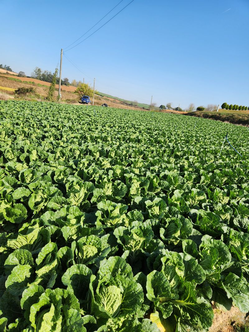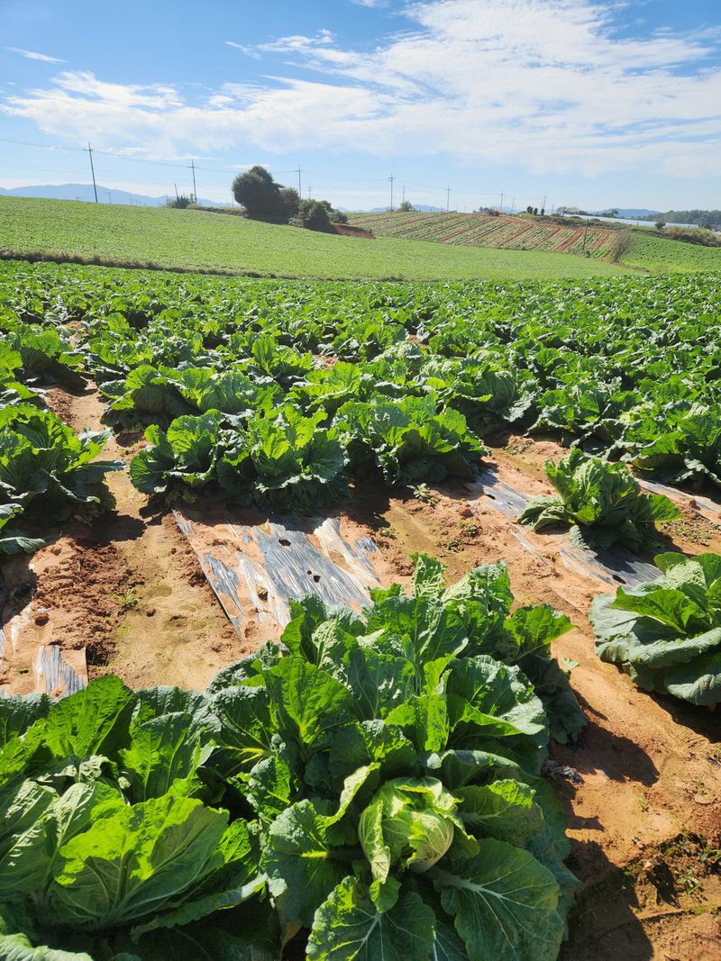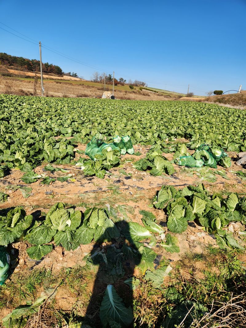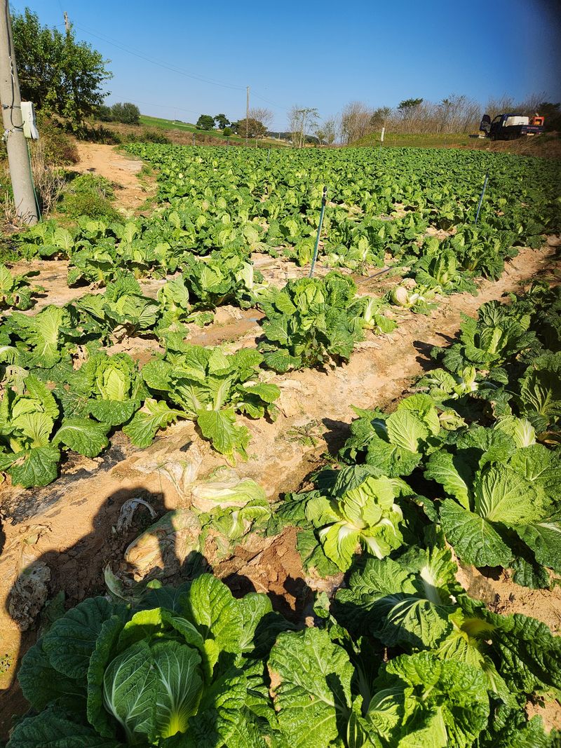 배추밭 둘러보고 먼저 작업가능한 상태좋은 배추 두눈으로 찜해두기 작업.