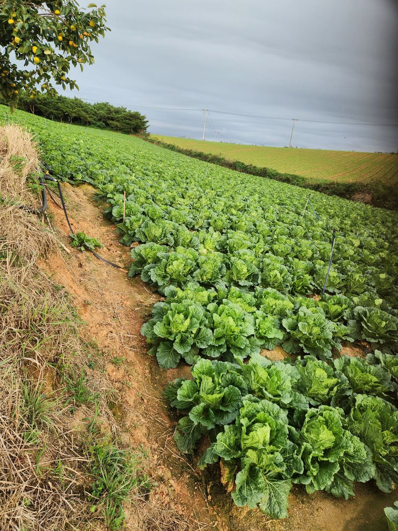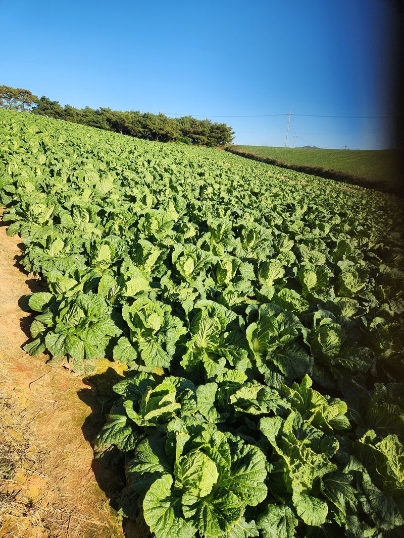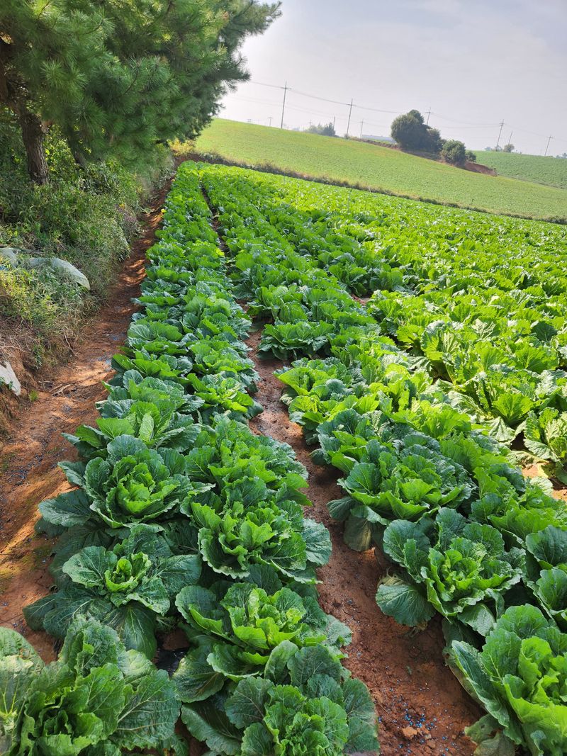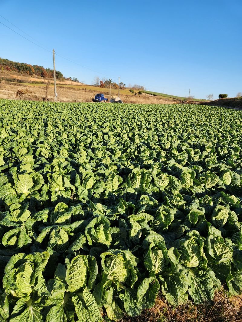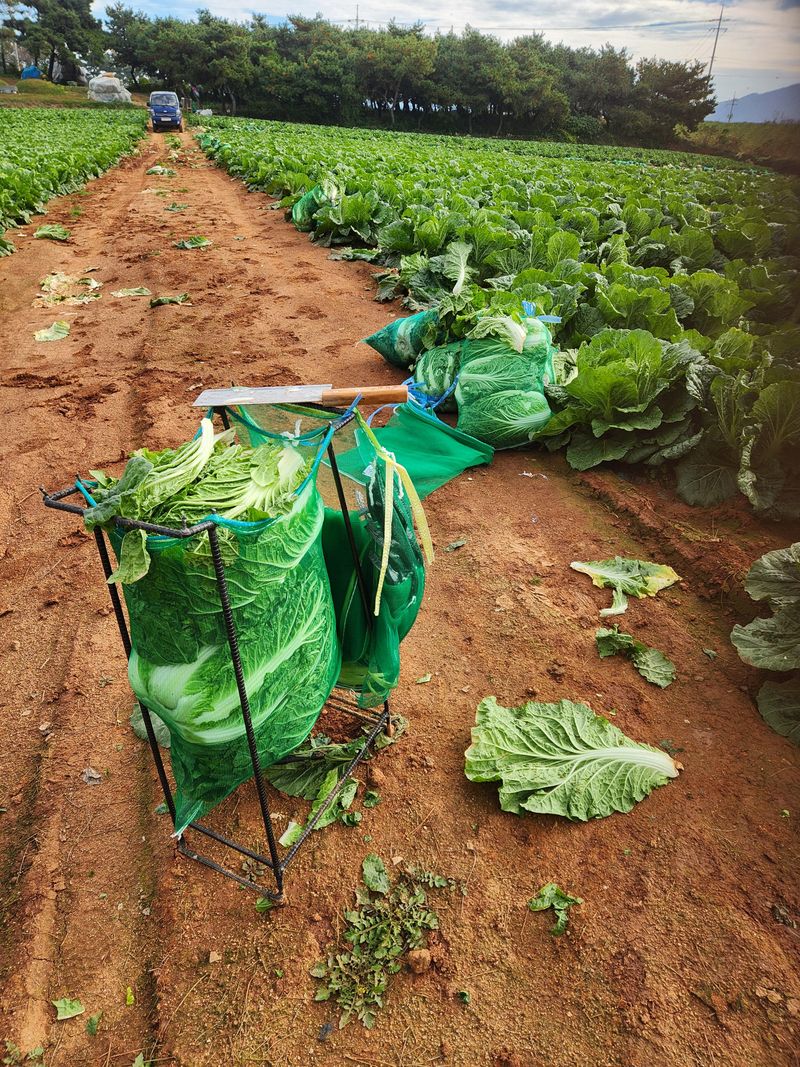 배추밭 둘러보고 먼저 작업가능한 상태좋은 배추 두눈으로 찜해두기 작업.