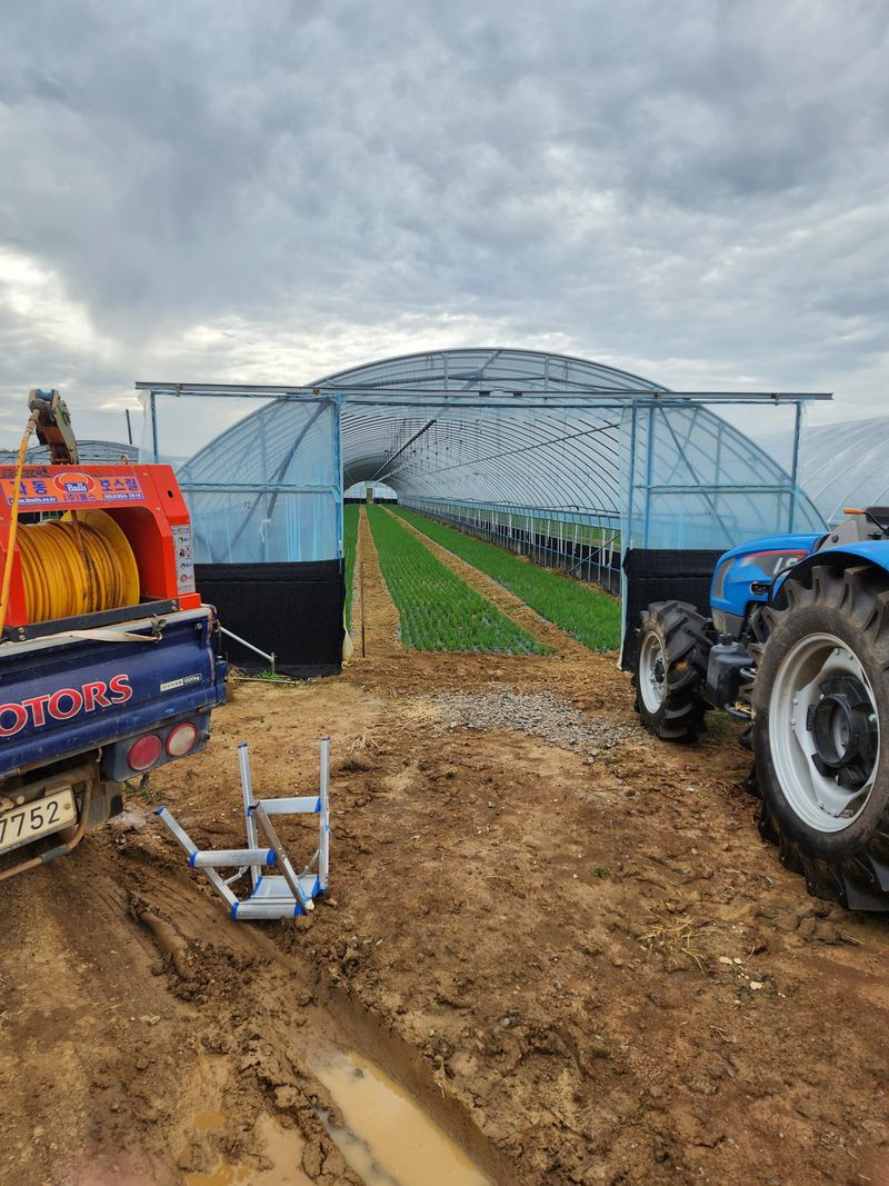 쪽파 올리기 위해 스프링쿨러 로 물주기 작업 하우스 4동