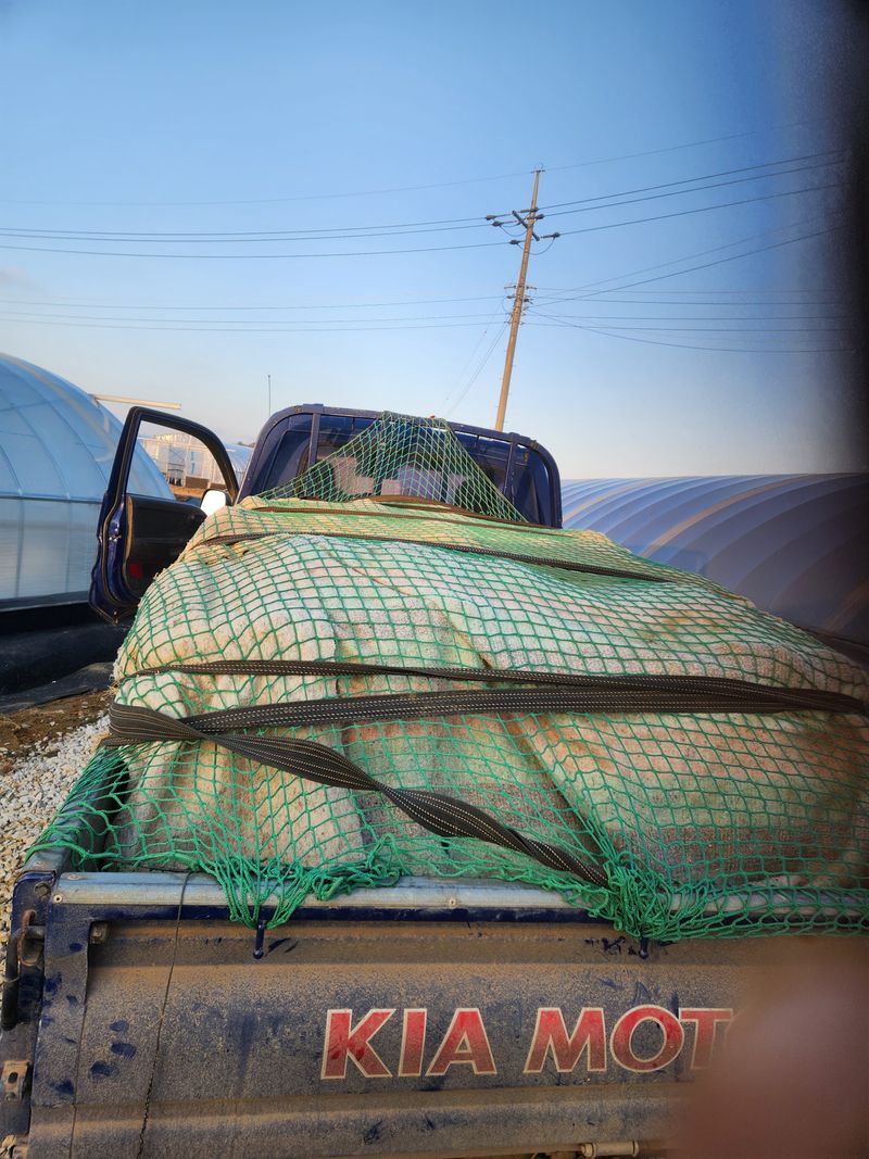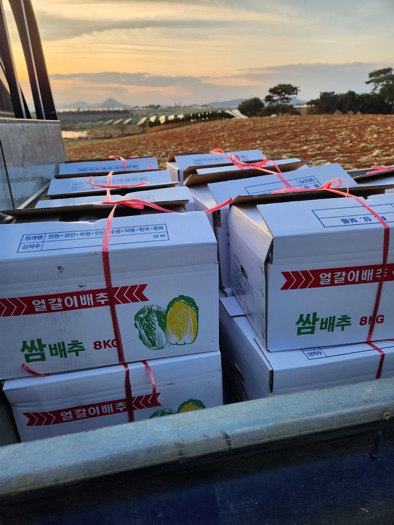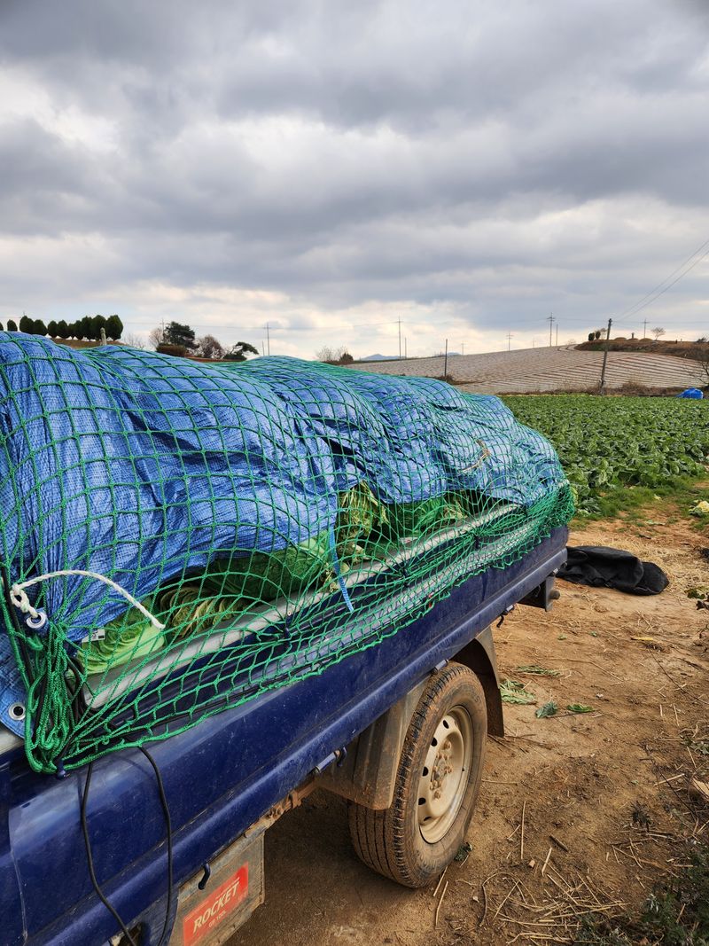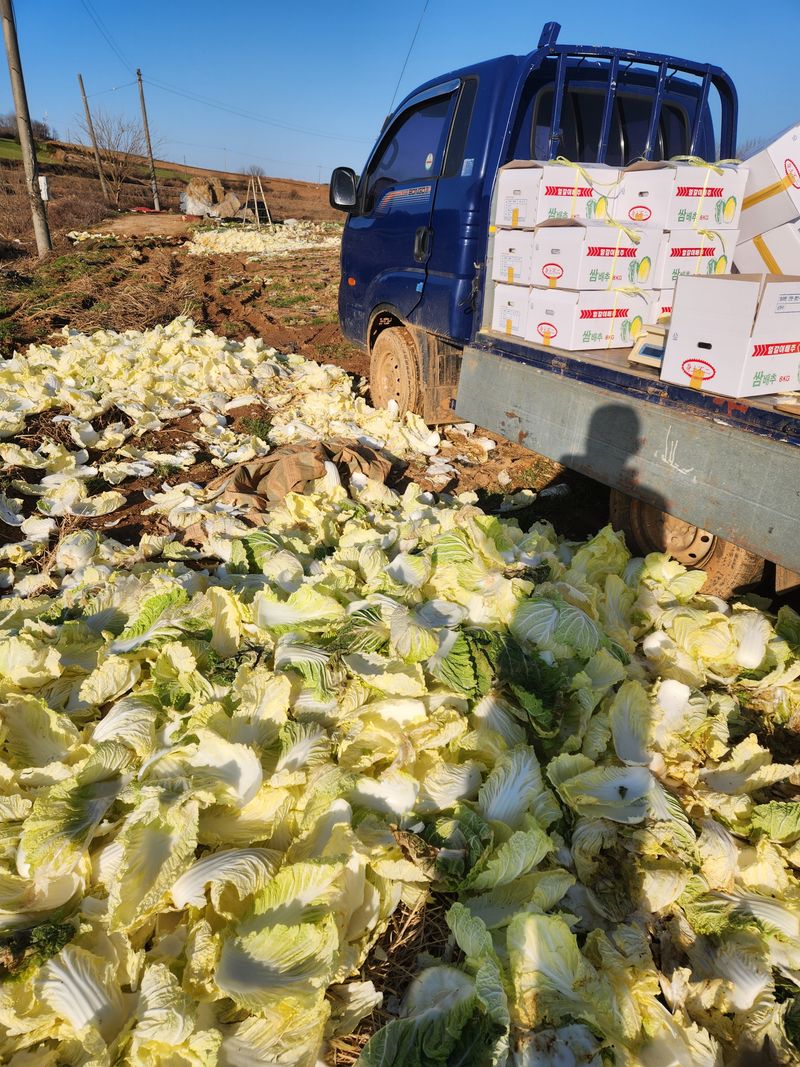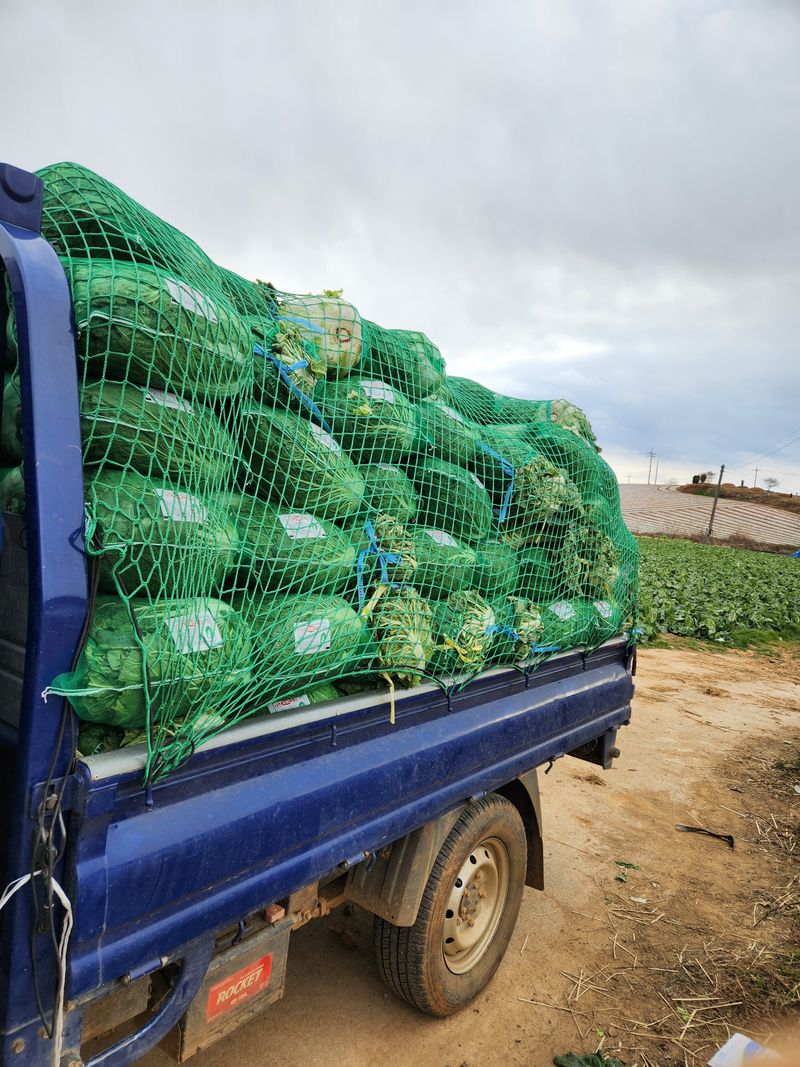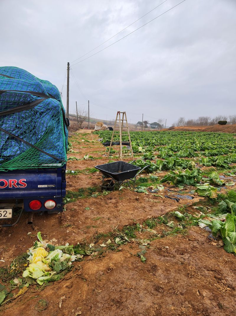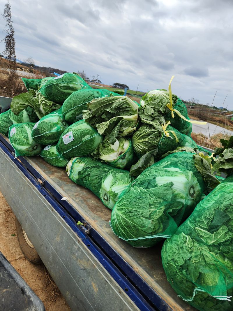 새벽에 눈이 내려서 배추상태 확인하고 이상 없다 판단해서 오전 10시경 부터 출하 작업개시 오후에 광주 농산물 경매장 으로 이동작업.