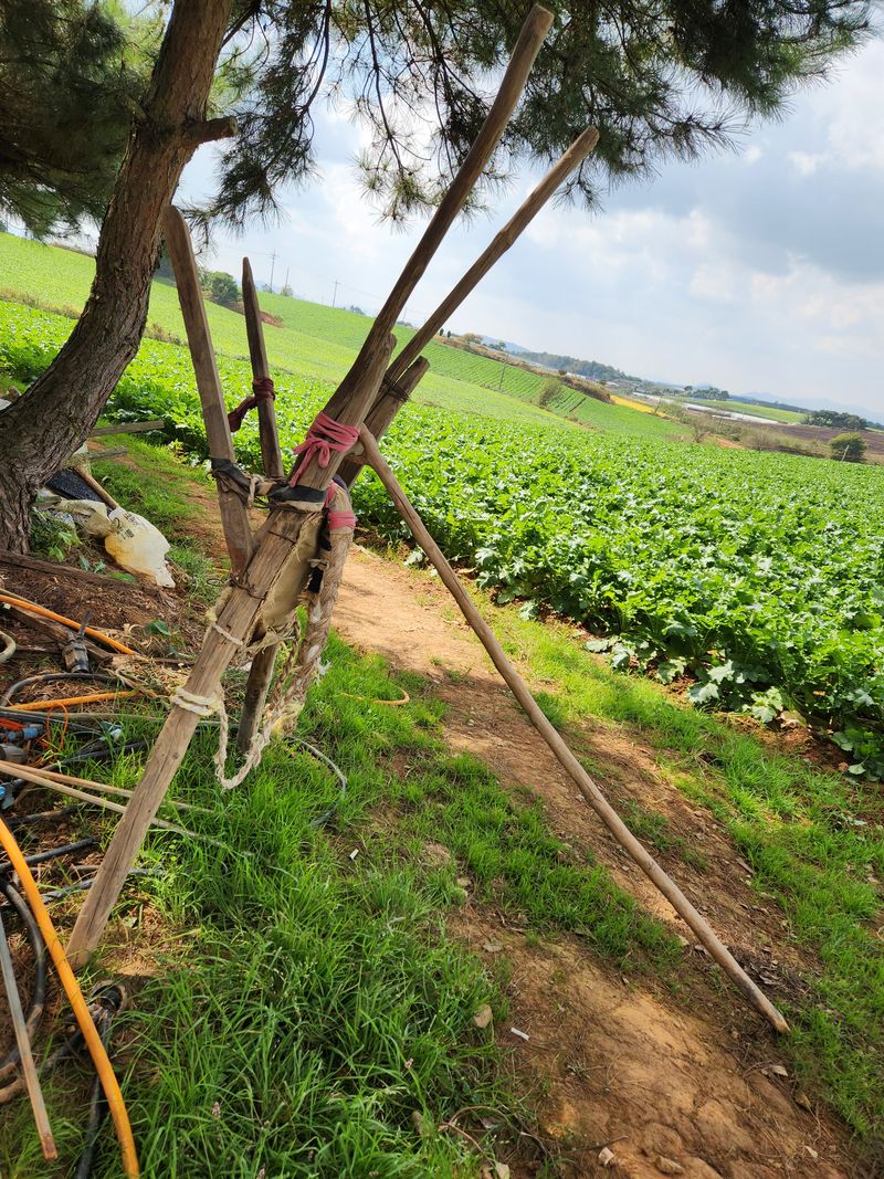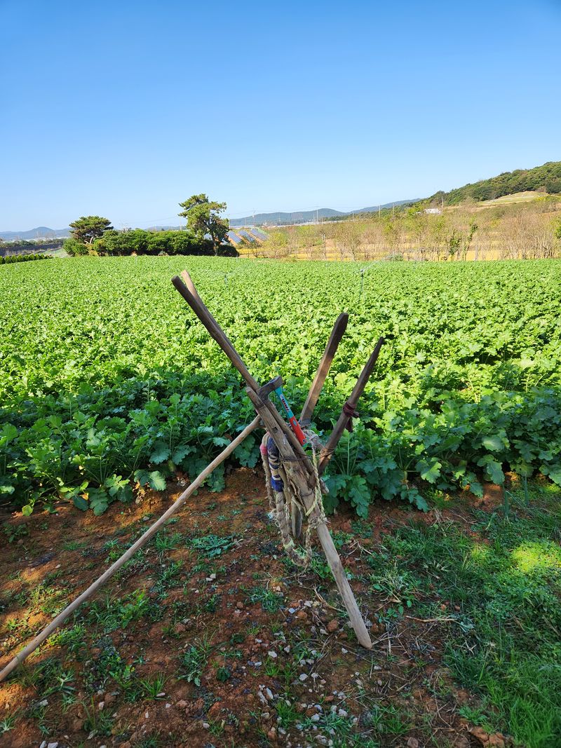 무시.배추밭. 잡초제거및 노는땅 저번에 작업 한데 잡목 .풀 지게로 걷어내기 작업.