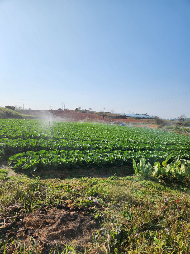 배추 농약살포작업.노균병.무름병이 너무심함.하우스 쪽파 본격적으로 올리기위해 스프링쿨러 로 물주기 작업시작 우선 4동언저