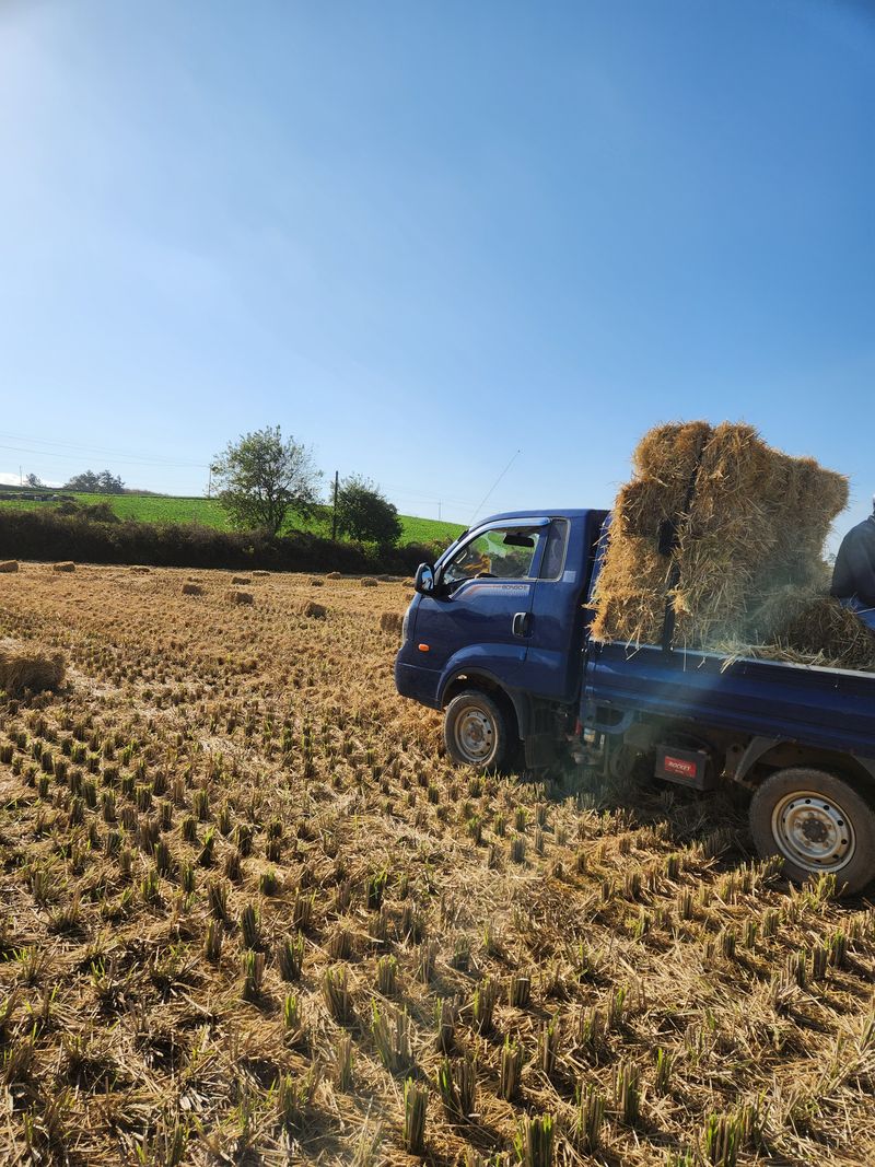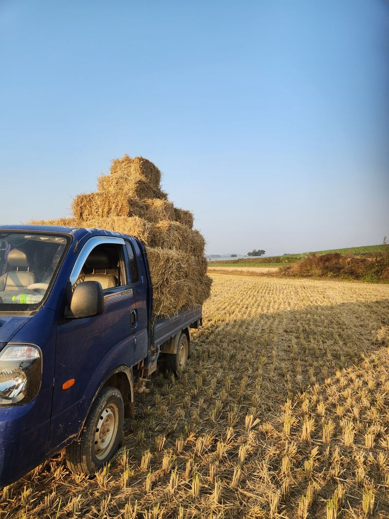 내년 영농사업 준비작업 지푸라기 묶어논것 차에 실어서 밭에다 옮겨놓기작업