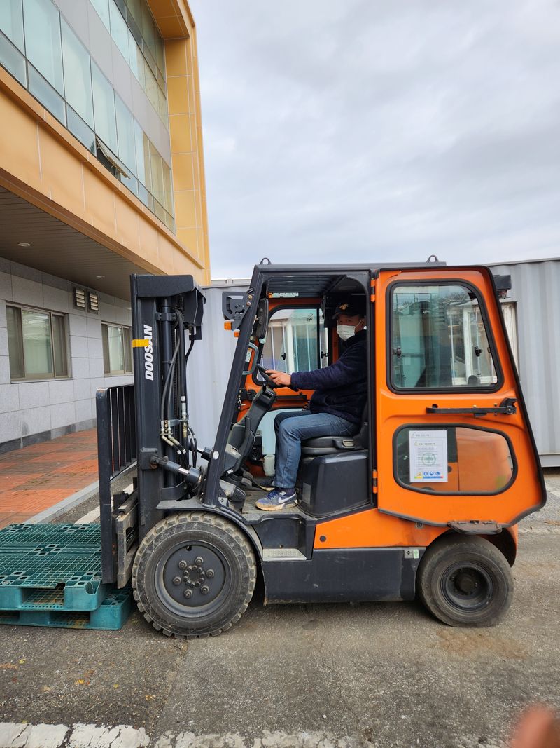 농식품 인력 개발원 가서 소형건설기계 지게차 실습3시간 작업.