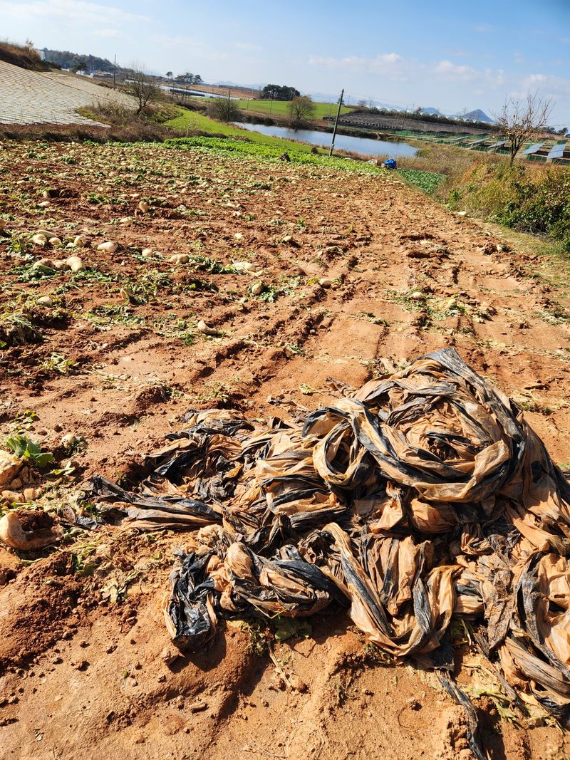 무시밭 지상물 철거작업 끝난뒤 비니루 걷기작업
