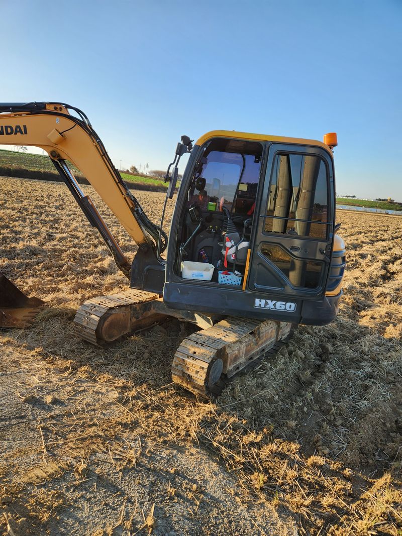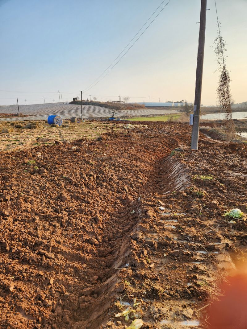 노지밭 관수시설 설치작업및 논 시설하우스 굴삭기 이용해서 고랑파기 작업