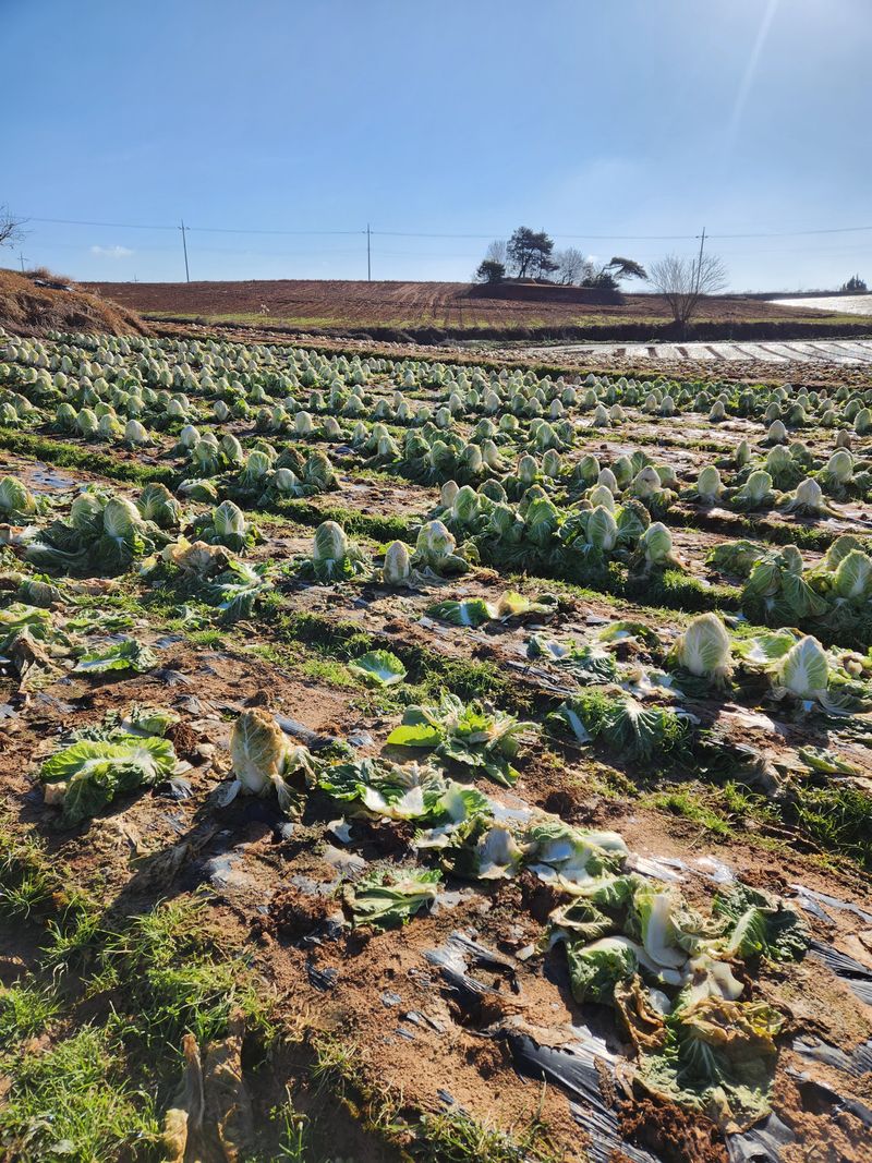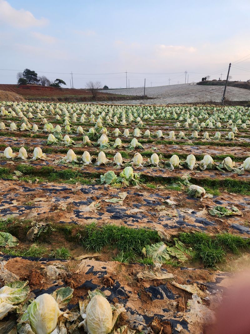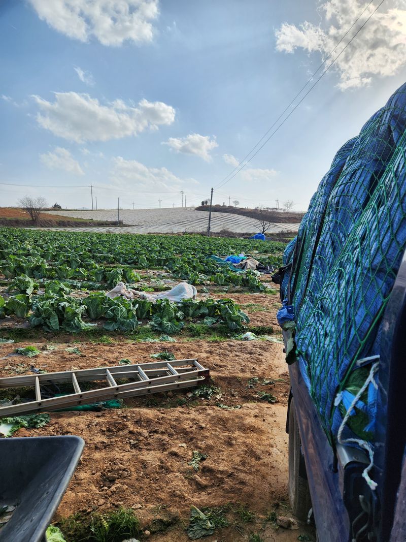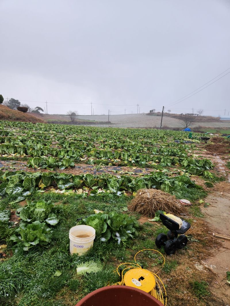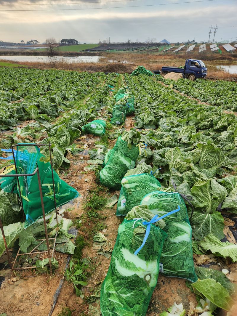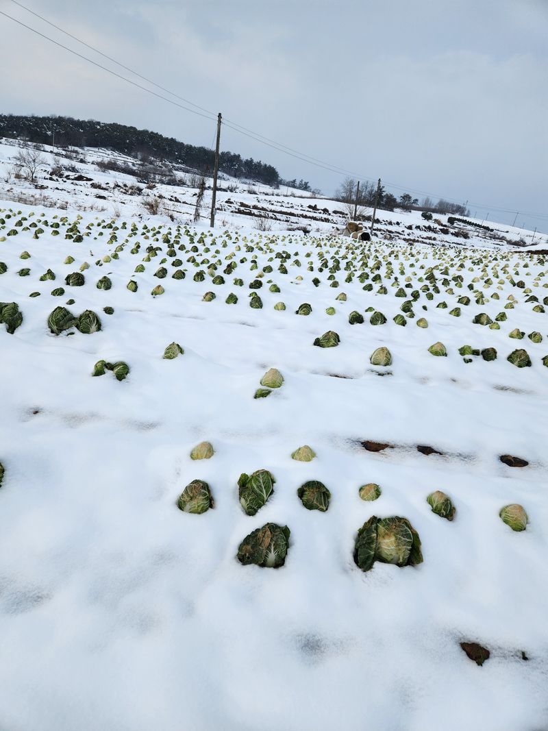 전날 눈이 많이 내리고 기온이 영하-10도 로 떨어져서 배추밭 갔는데 전부 얼어서 전사 상태로 발견됨. 향후 날이 풀려서 살아나면 쌈배추로 작업전환 예정.