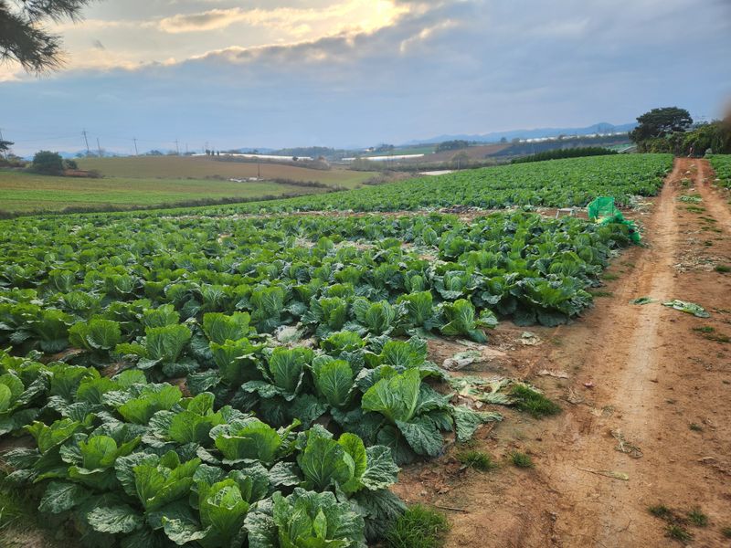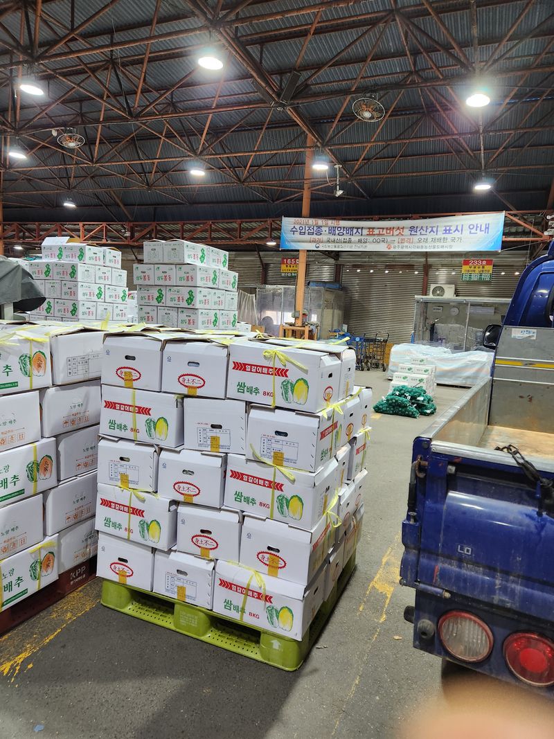 배추 수확 작업 해서 광주 농산물 배추 경매장으로 이동.