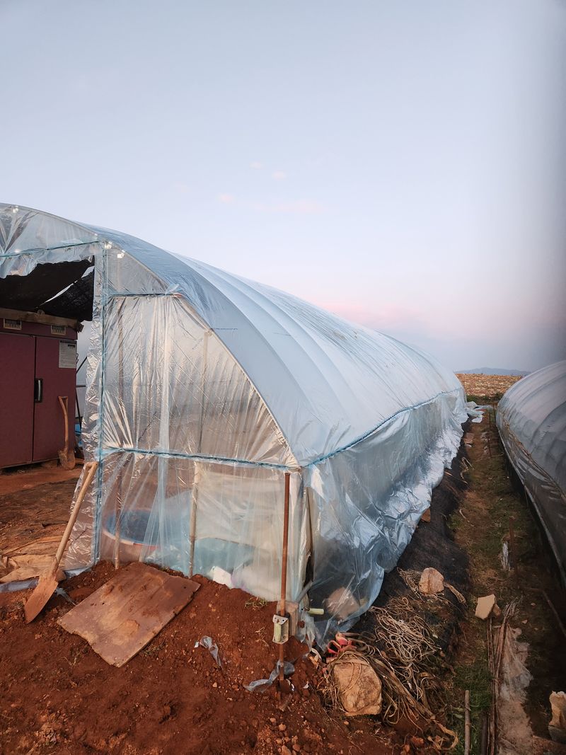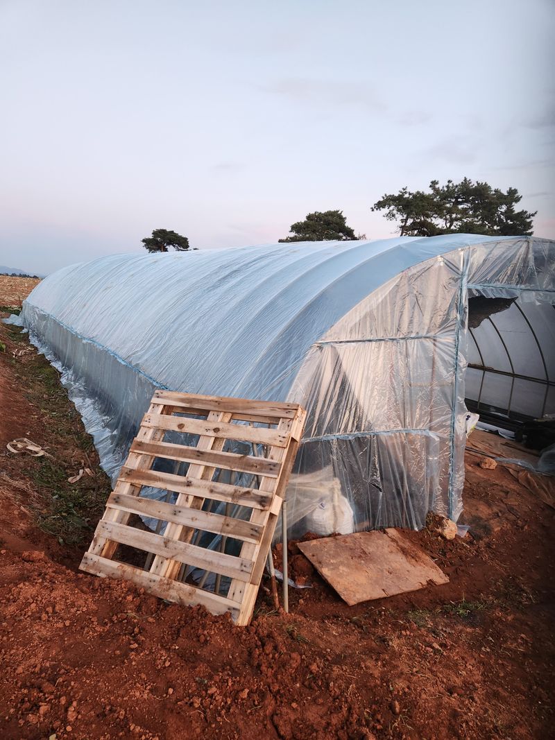 온실밖 세상으로 나가기 하루전 터널비닐걷기 작업
