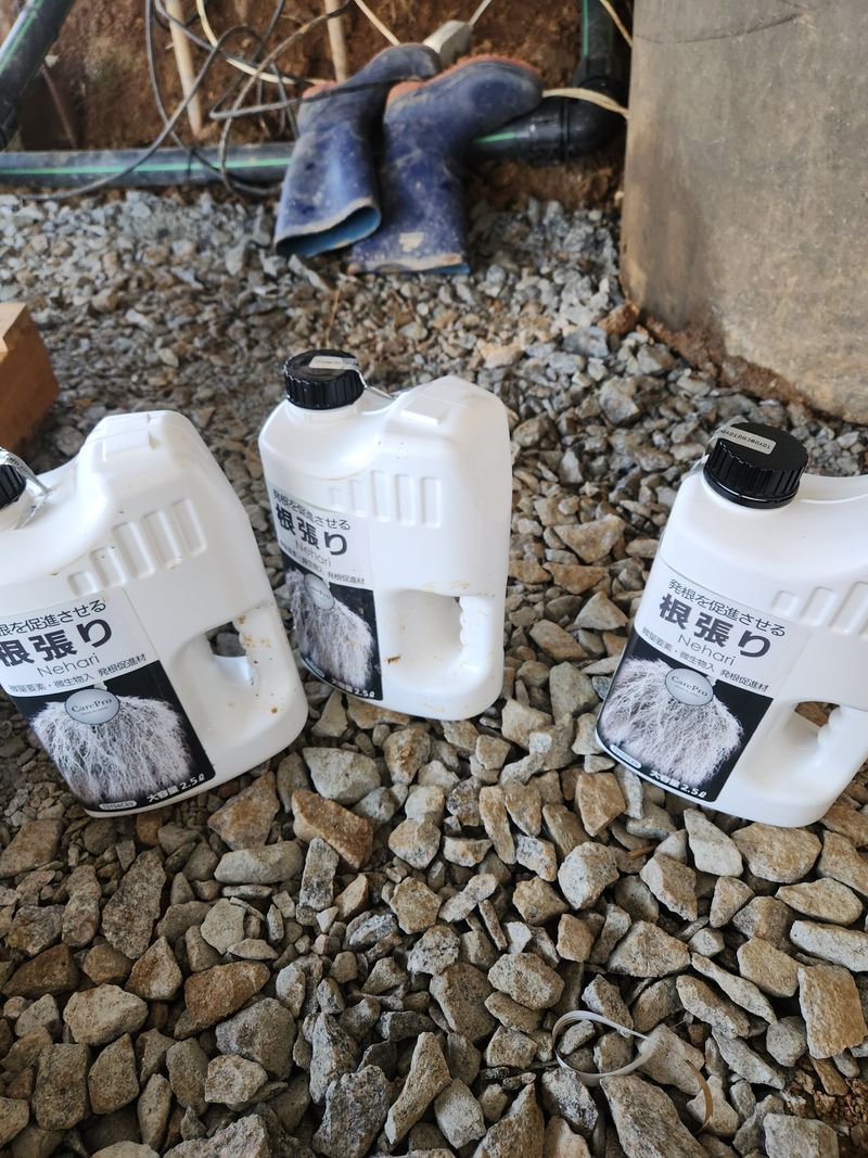 1차메롱 정식후 3일째 발근제.영양제 살균제 점적호수로 물과함께 밀어주기작업