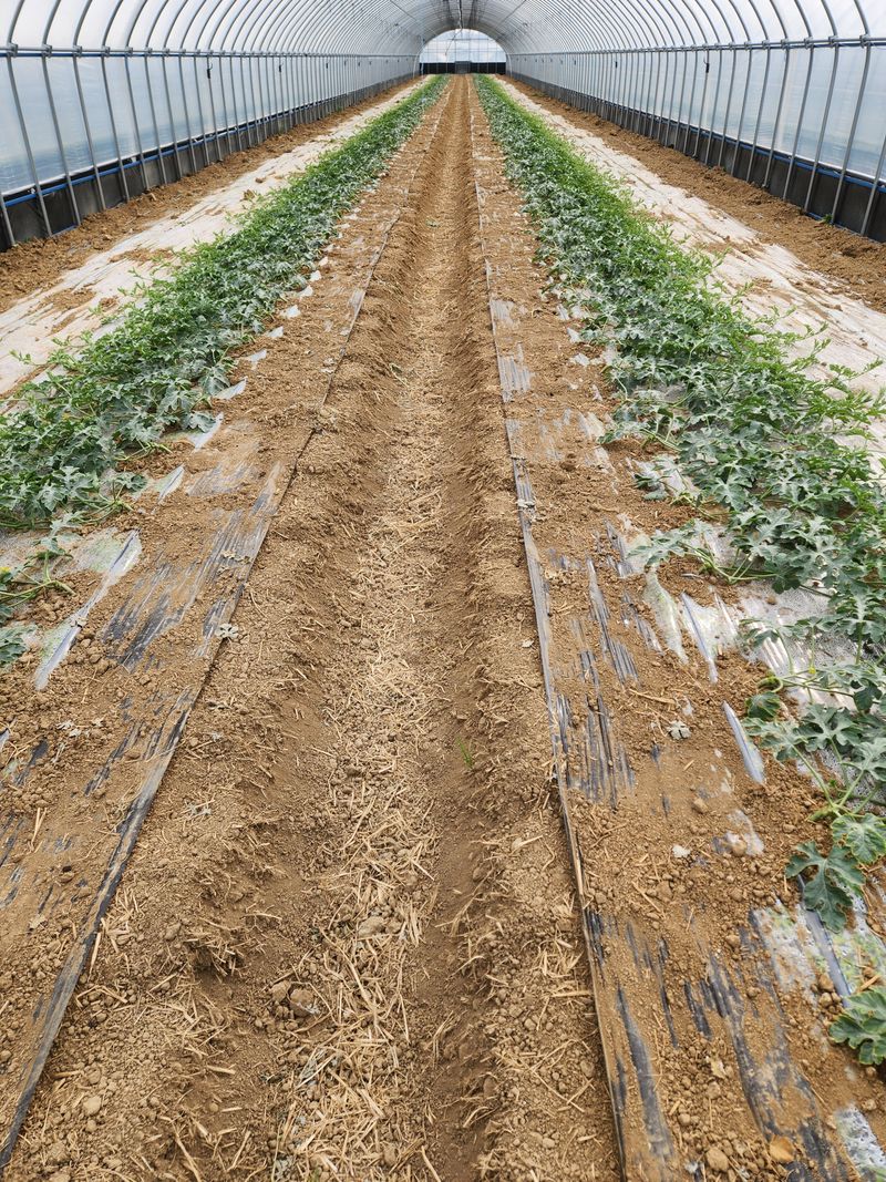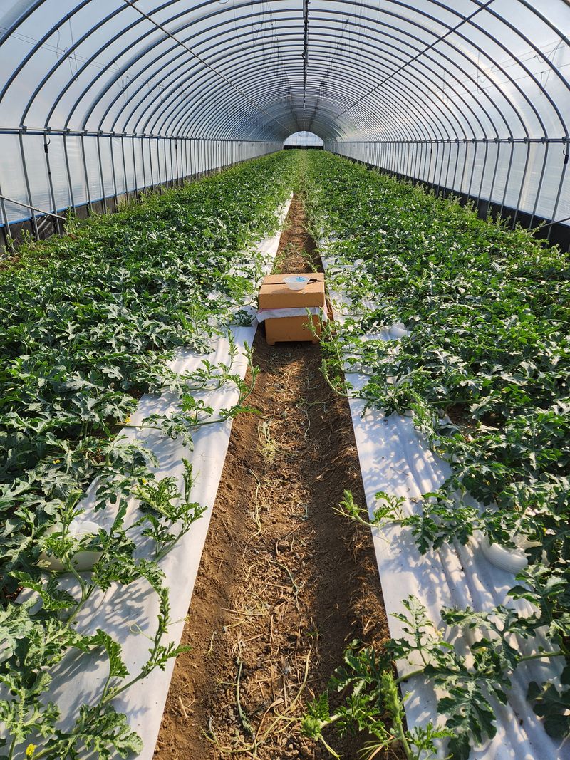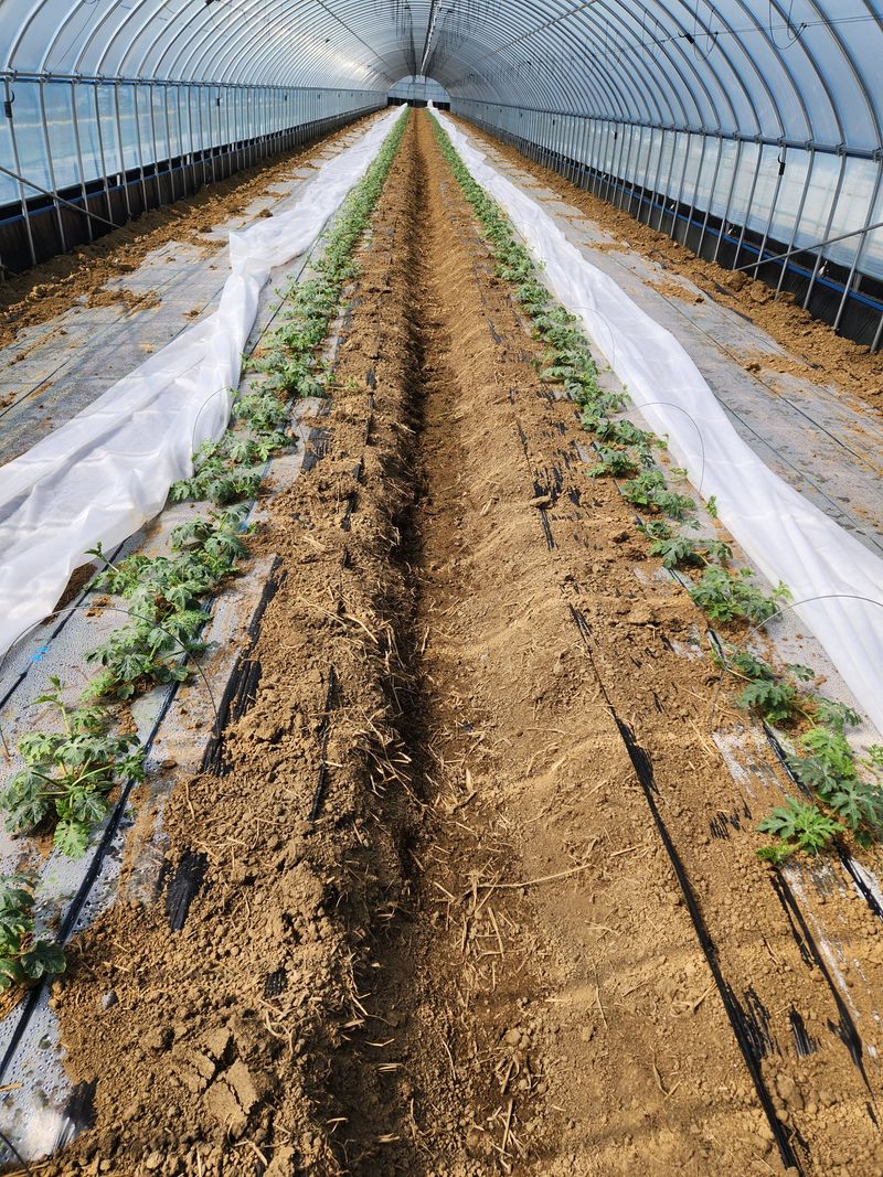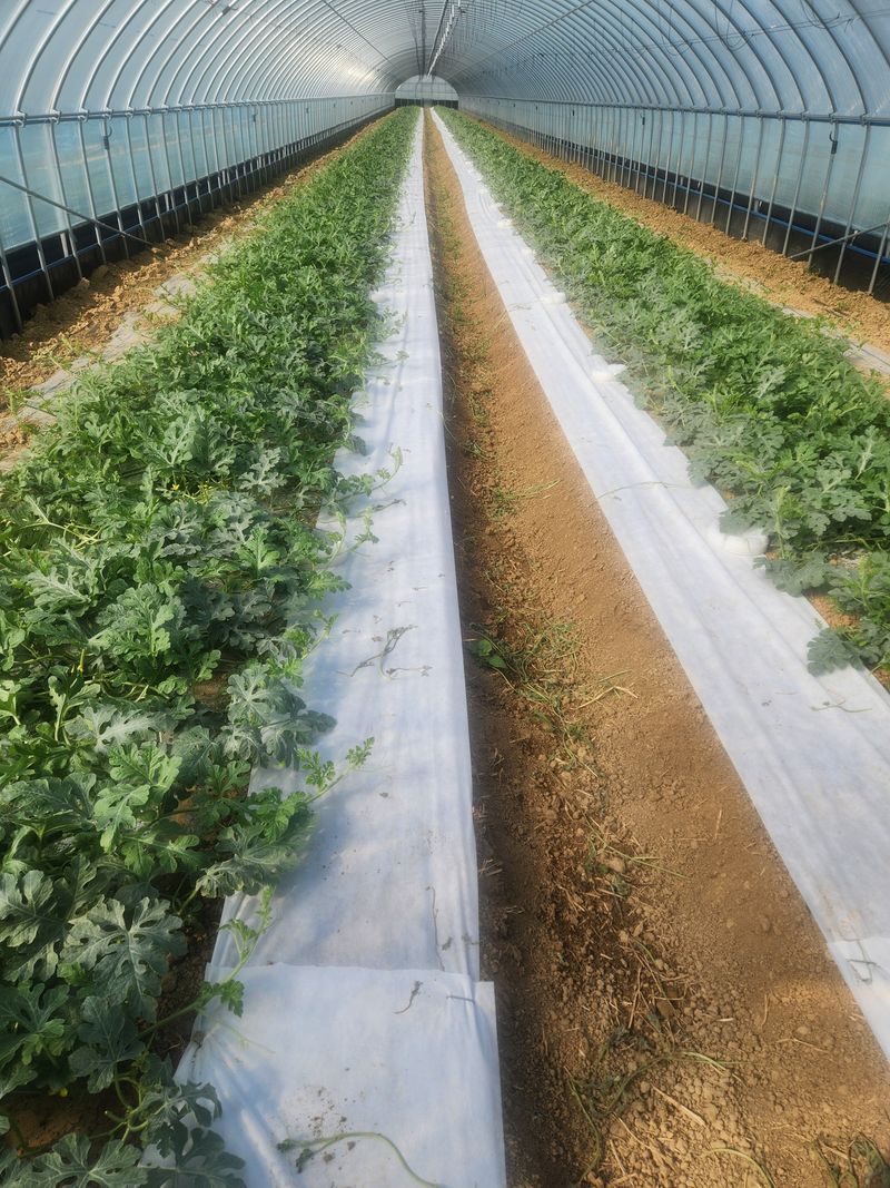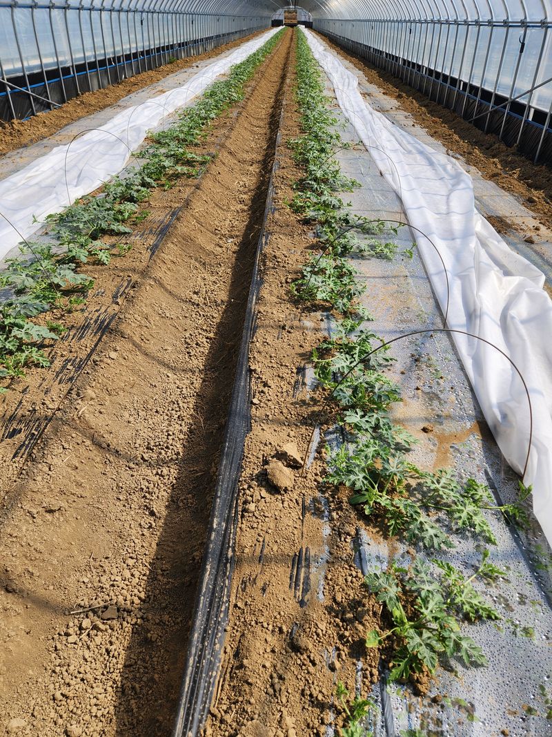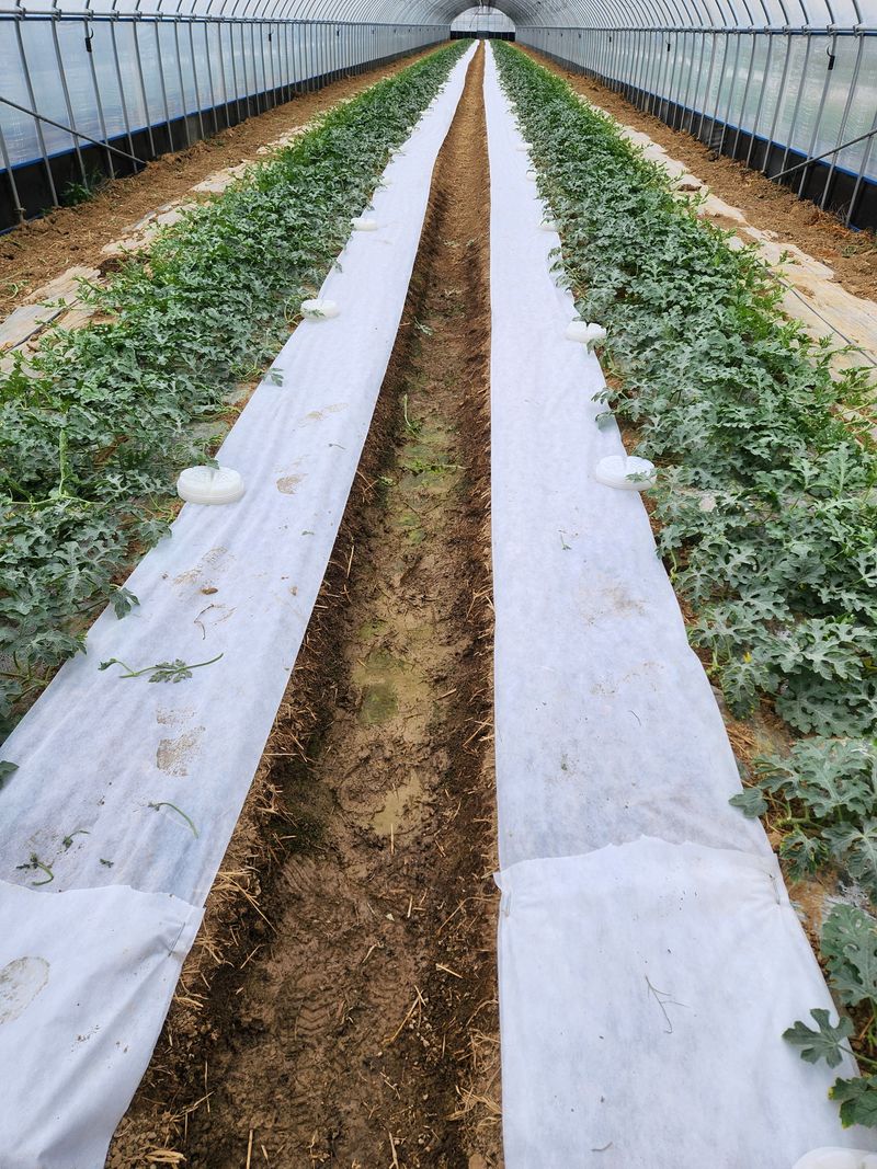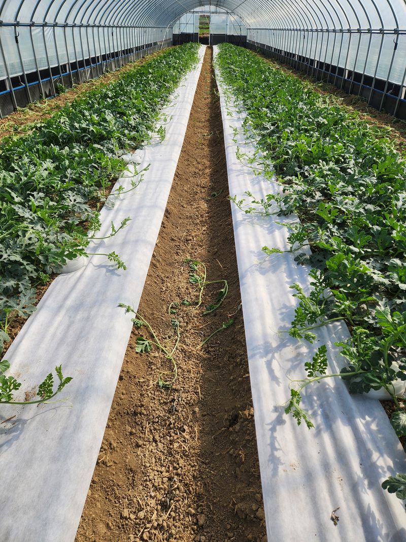 수박 받침 제거하고 부직포 철거작업 7동.나머지 7동 출하작업완료. 수박순 목아지 자르기작업