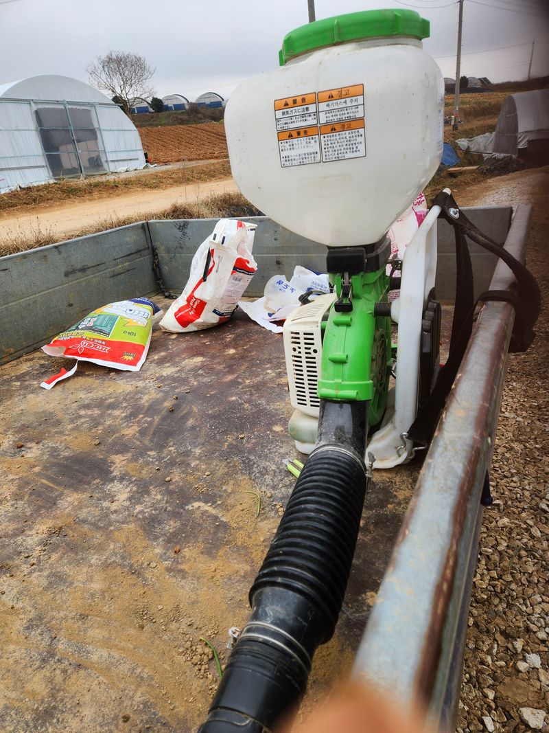 상태가 좋지않는 쪽파 질산칼슘.인산.성장엔 섞어서 기계로 살포하고 한시간 물주기작업