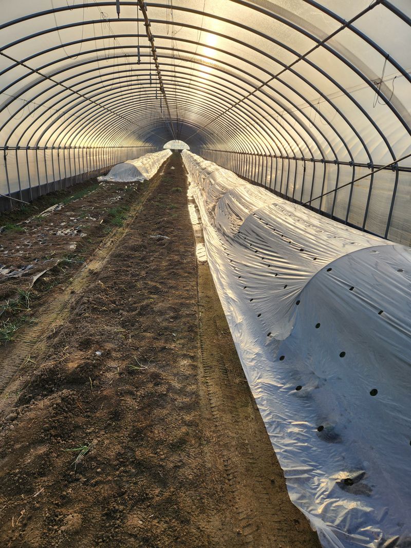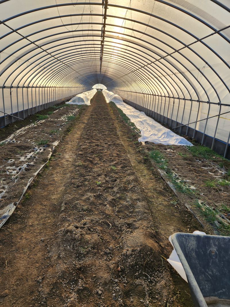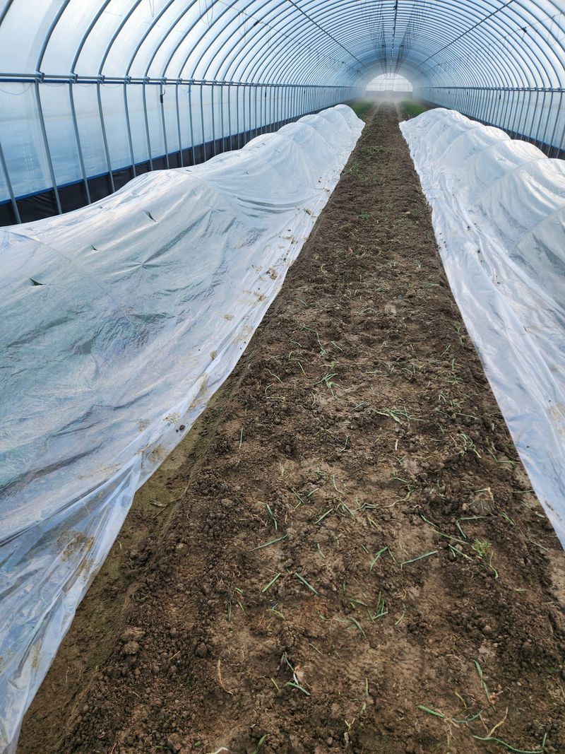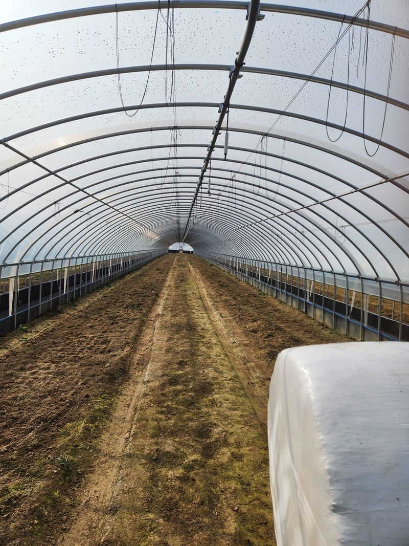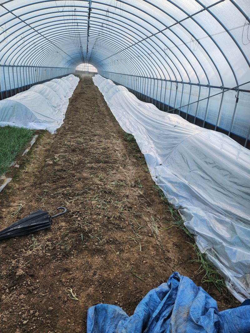 보온을 위해서 터널비닐씌우기 작업 및 일부는 부직포 덮어주기 남자한명투입