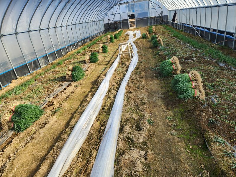 쪽파 며칠후 작업할하우스 생육상태 확인하면서 환기 시켜주기 작업