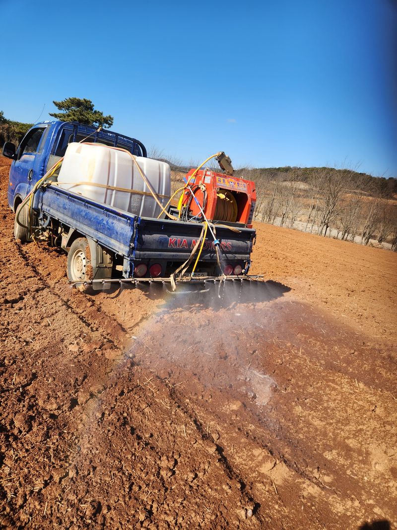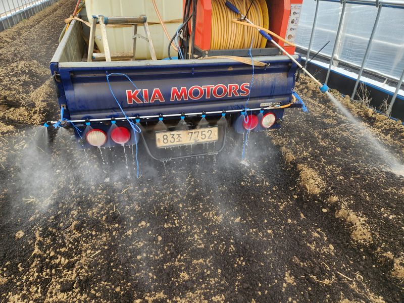 퇴비뿌린뒤 미생물 살포작업 혼합