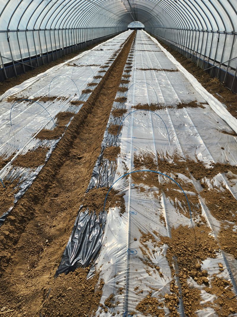 관리기로 고랑 만들고. 점적호수 깔고 시간 남아서 일부 비니루 치기 남잣ㅔ명투입