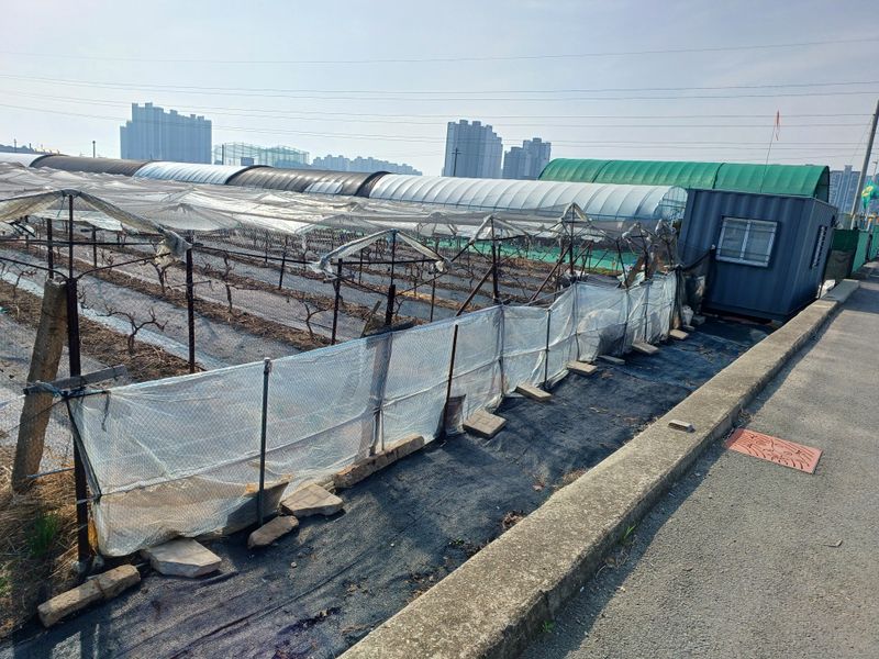 오늘.포도밭.노지.비가림.진행중.바람이많이.불어서.내일.바람이.조용하면.마무리할깨요.농민.이웃모두.건강하새요
