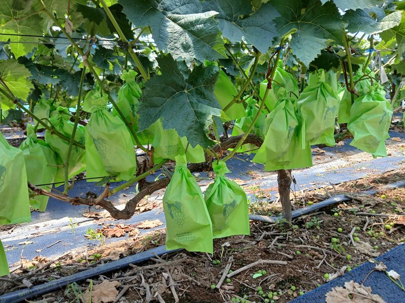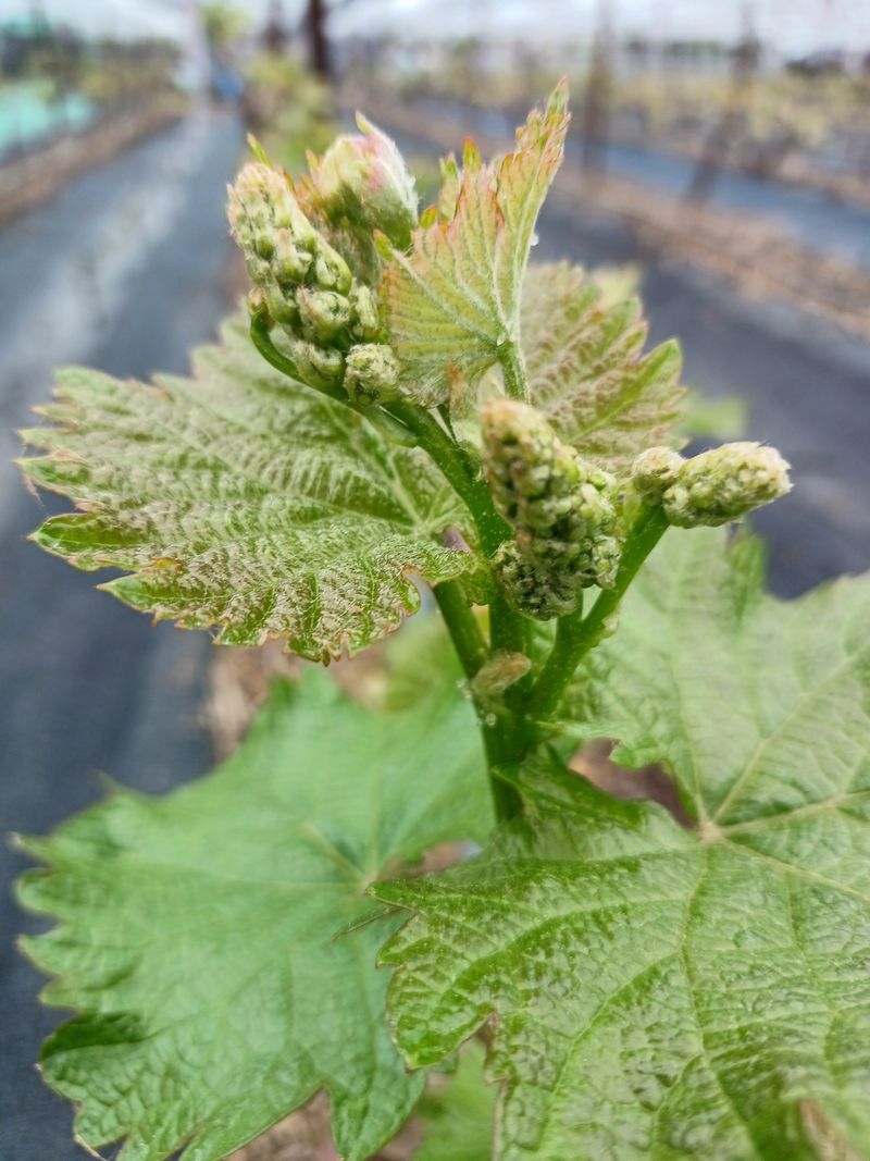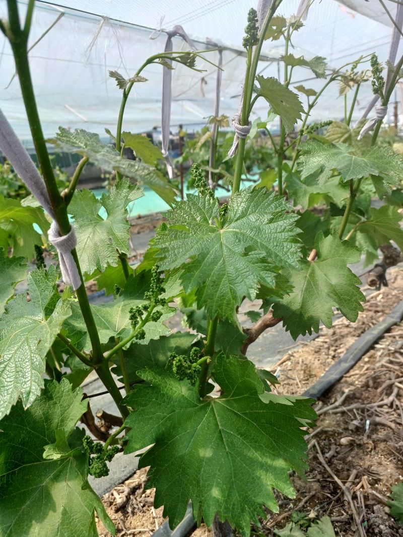 비가림.노지포도.완전.완료함.지금.포도순.잎이생김.
