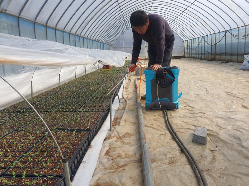 고추씨를 트레이에 직파작업 날씨가 넘 추워서 걱정이네요 고추씨 품종은 칼라탄골드 청량고추 돌격에최강