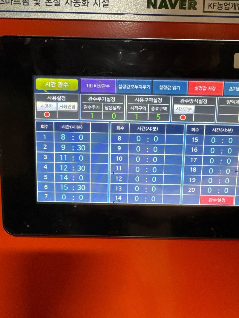 화분화 종료 관수시간 1시간 30분 간격으로 7번 ec , ph 0.8 , 6.5로 0.1씩 변경 led 시간 1시간 증가 2,3번 8:00~17:00 1,4번 9:00~ 15:00 온도 낮 온도 22도에서 24로 증가 낮 온도 시간 16:00에서 17:00로 ...