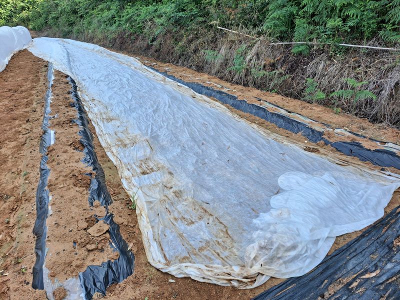 생강고량이넙어서 참께을심어봐서요 비닐씨우기을하는데 관히기가제마음대로 가더분요 그래서고랑이1m-3m터정도되서요