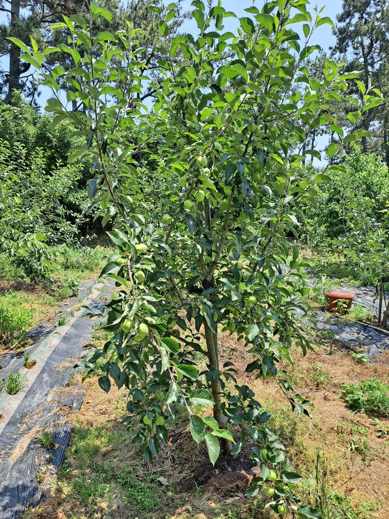 사과가 많이달려서 주고 조금 따주고 아래쪽에는 풀 매트을깔아줄려고 합니다