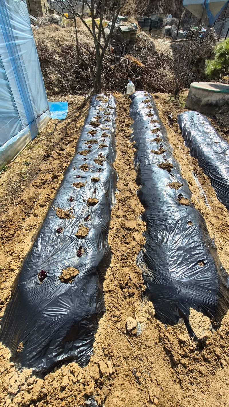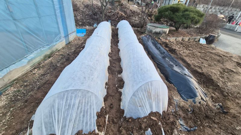 노지에 적상추 심엇는데 날이추워 부직포씌우기
