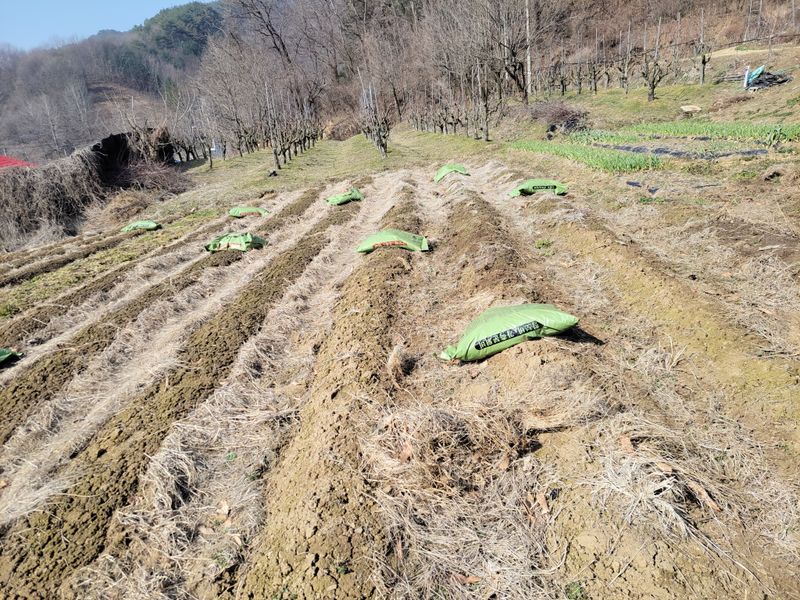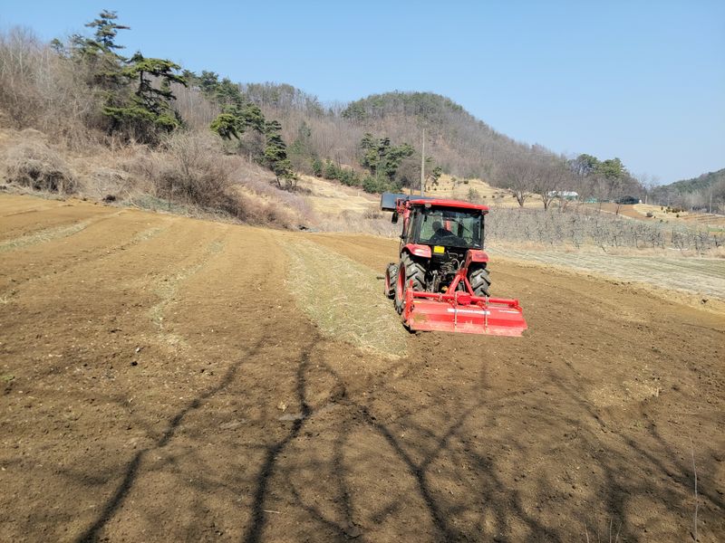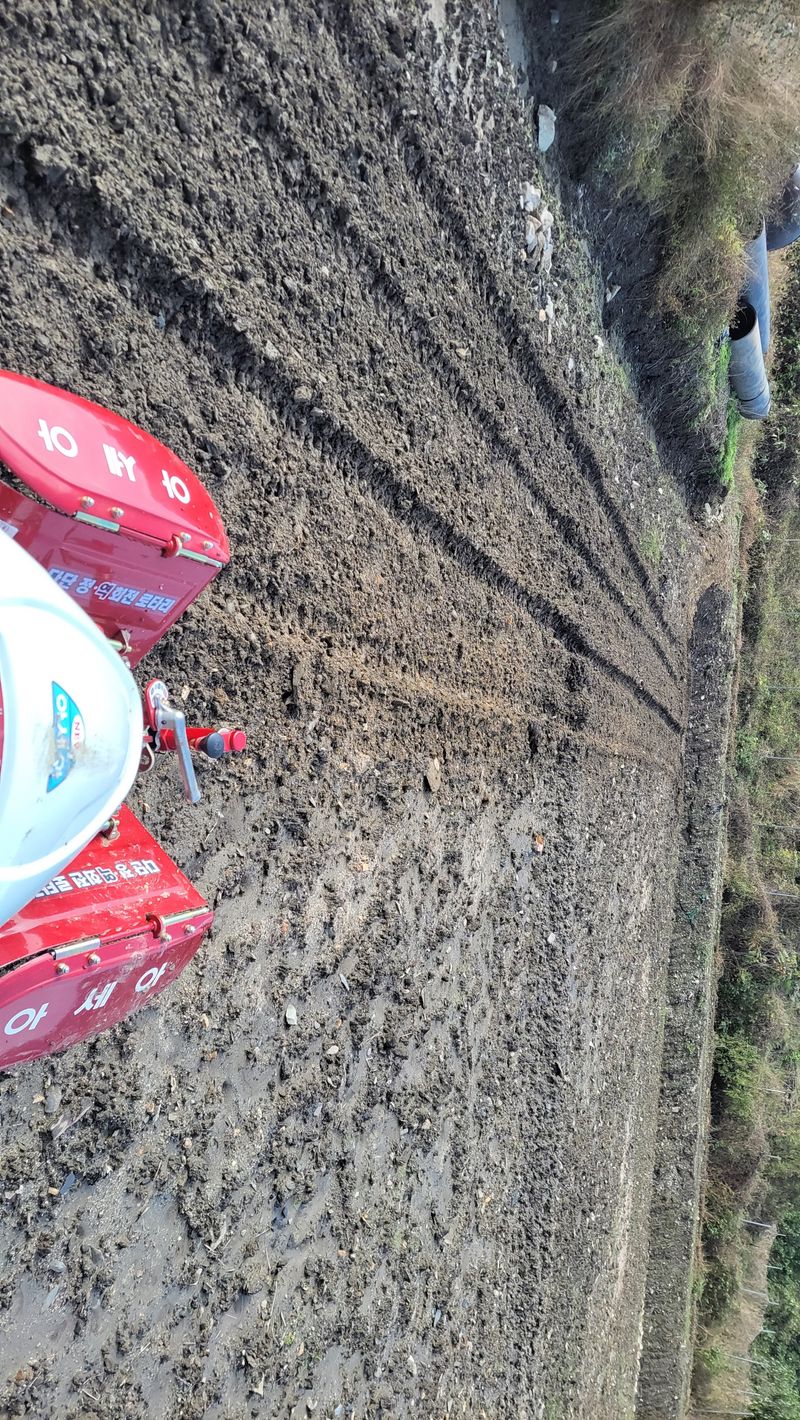 텃밭엔 퇴비 넣고, 엄나무 종근 심을 밭은 그냥 ᆢ 로타리 쳤습니다. 담주 관리기 빌려다가 두둑 만들고 종근심을 예정ᆢ