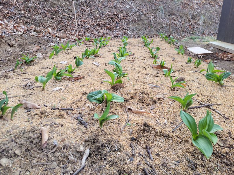 밭 정리가 마무리되고 우선순위는 엄나무 종근, 두번째는 적채를 심을 예정입니다. 무럭무럭 자라는 아이들이 신통하네요~^^ 올리는 김에 작년에 옮겨심은 산마늘 사진도 올립니다.