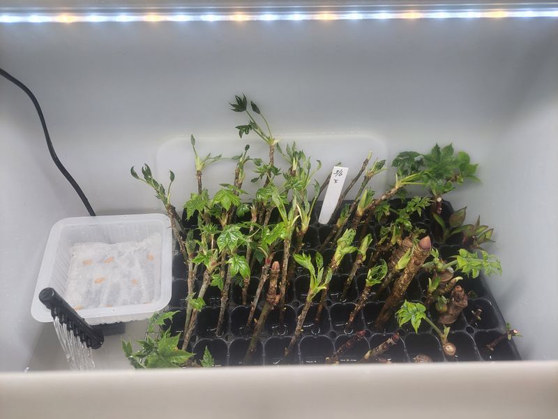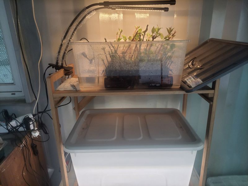 종일 비가와서 나가지도 못하니 실내에서 일을 찾습니다. 산소삽목기와 수경재배기 만들기ᆢ? 어설프게 만들어 놓았었는데ᆢ 그냥 간단하게 어항용 펌프 돌리고 식물등을 달았습니다. 하고싶은건 많은데, 일단 엄나무 가지와 종류도 모르는 수국을 시험삼아 넣어주었고요. 상태 보면서...