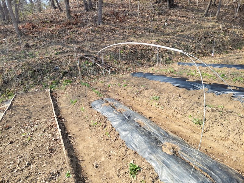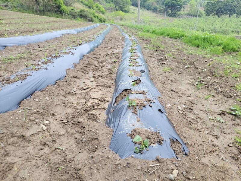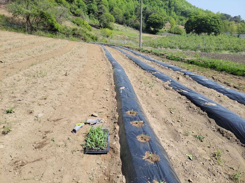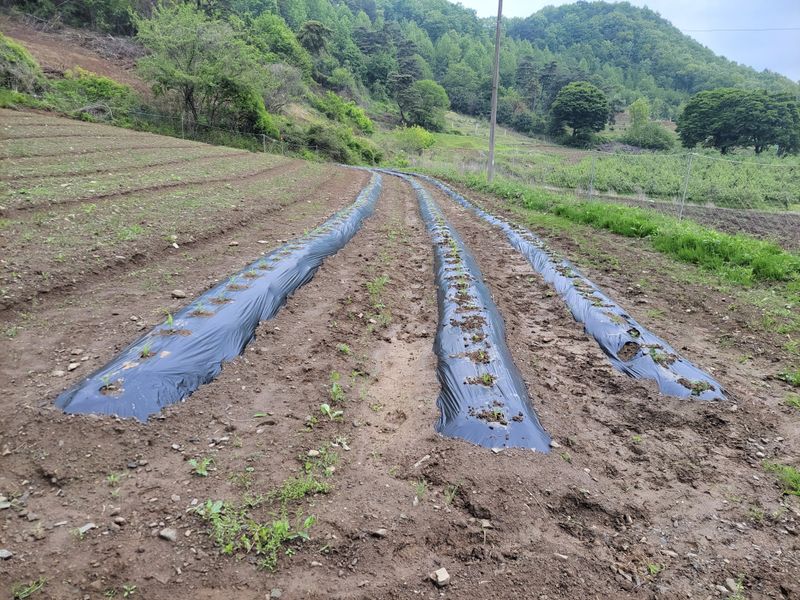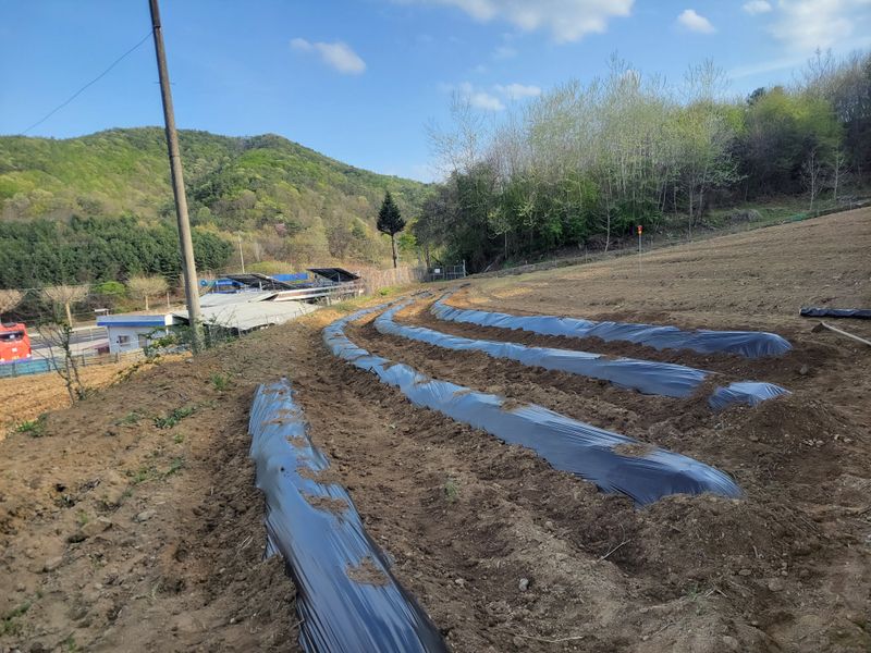 너른 밭 엄나무 종근 심고 남은 땅에 비닐 쳤습니다. 두둑은 관리기로하고 비닐은 수작업으로 하다보니ᆢㅎ 종근 심고 처음으로 엄나무 싹이 나왔네요. 근 20여 일 만에ᆢ