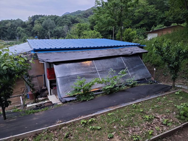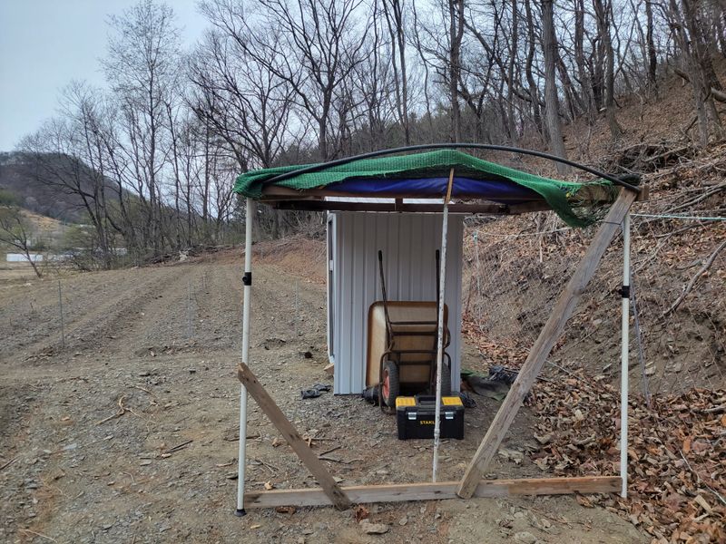 어제 해태망 친 엄나무 밭에 창고, 수리 했습니다. 이동네 바람 장난 아닙니다. 2월 돌풍에 넘어갔던 창고, 없애자니 아쉽고 그렇다고 두고 보자니 또 그렇고해서, 일단 수리해서 쓰는걸로ᆢ ㅎㅎ 헌데, 오늘 밤 또다시 돌풍이 분다는데ᆢ개안겠죠ᆢ?