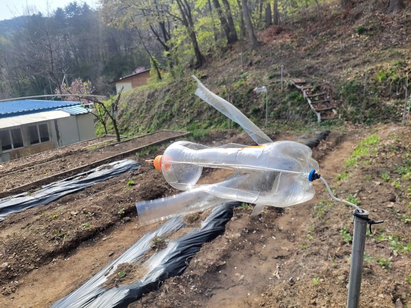 오늘은 농막 주변 정리로 시간 다 갔고요. 그중 하나, 두더지들 싫어한다는 바람개비를 만들어 세웠습니다. 진짜 효과가 있는지는 모르지만 보기는 개않네요~^^