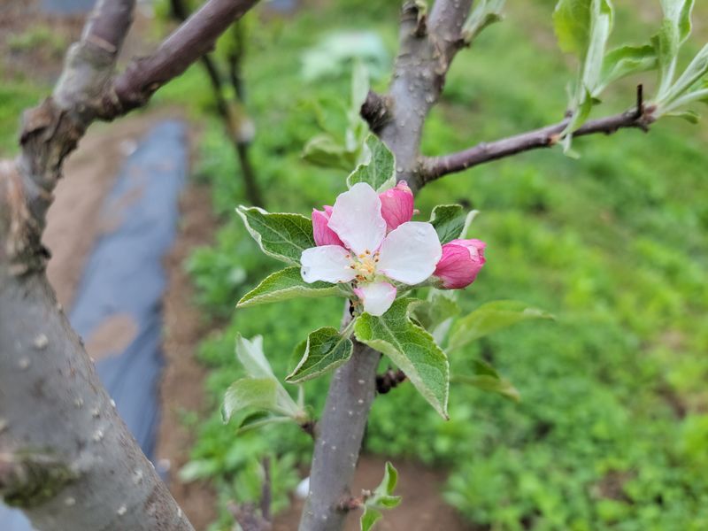 산에 취나물이 보이길래 몇포기 캐와서 조그맣게 취나물 밭을 만 었습니다. 작년에 심은 사과나무 꽃이 피었네요^^