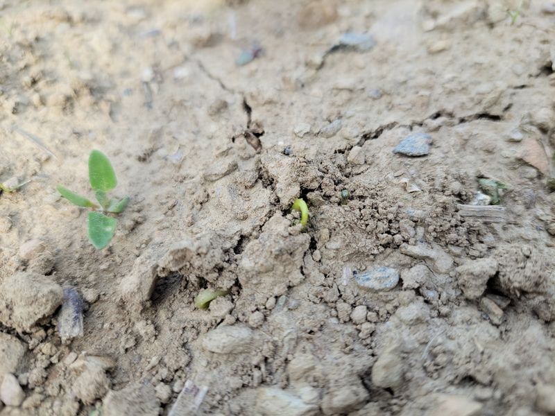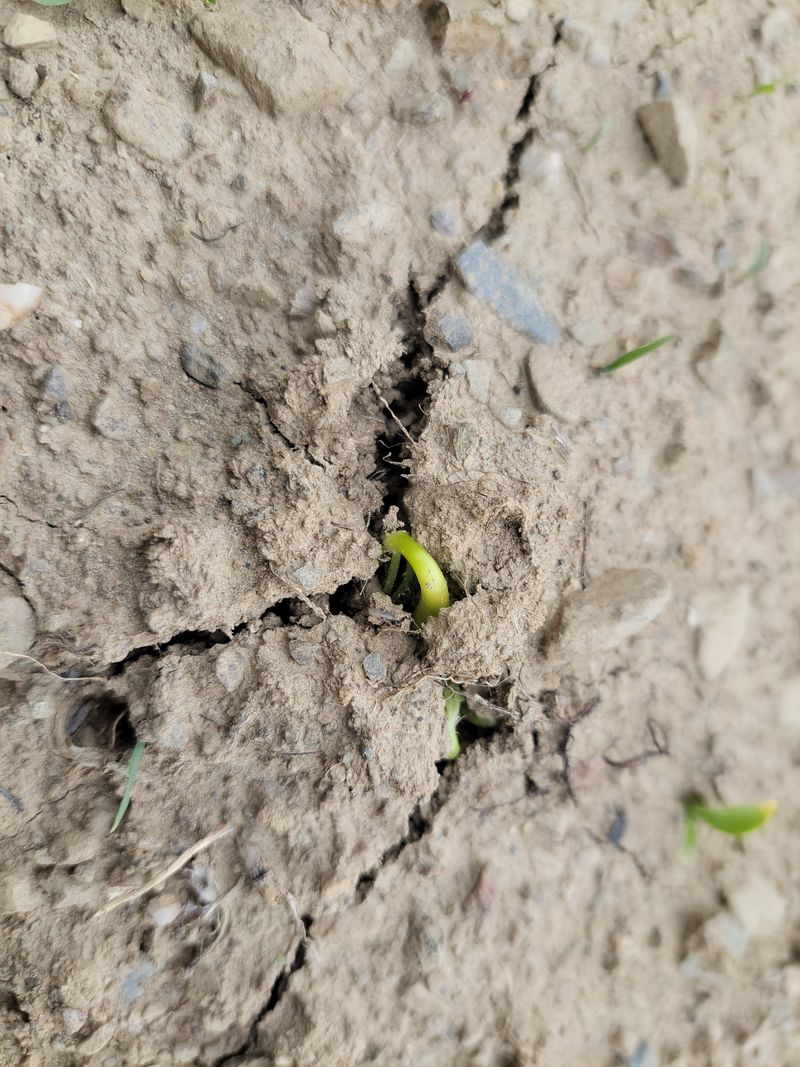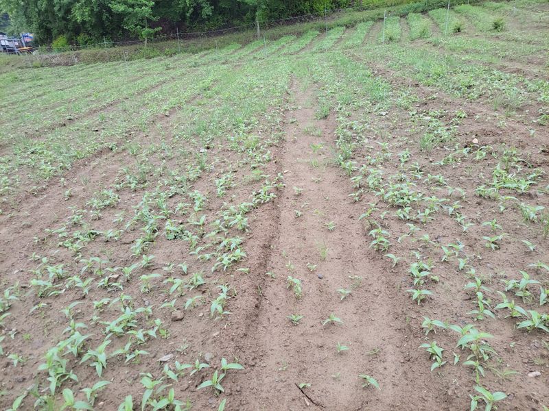 감자 캔 자리에 심은 서리태가 벌써 싹을 틔움니다. 너른 밭 예초기 돌리러 갔더니 엄청 뜨겁습니다. 엄나무 밭은 처다만보고 겨우 두릅나무 쪽만 깍고 쫓기듯 드왔습니다. 뜨거울땐 작업 중단ᆢ