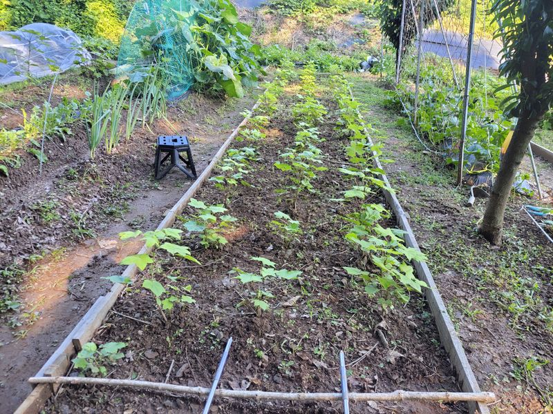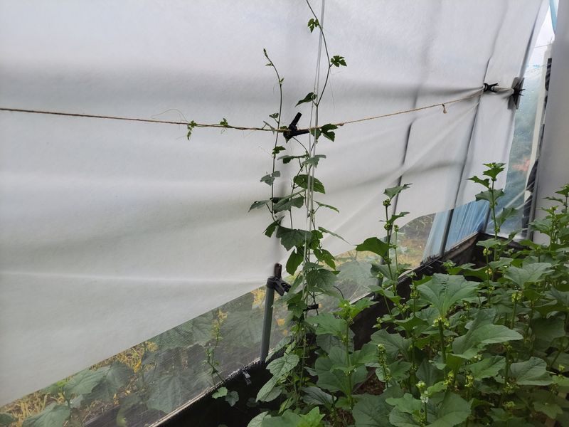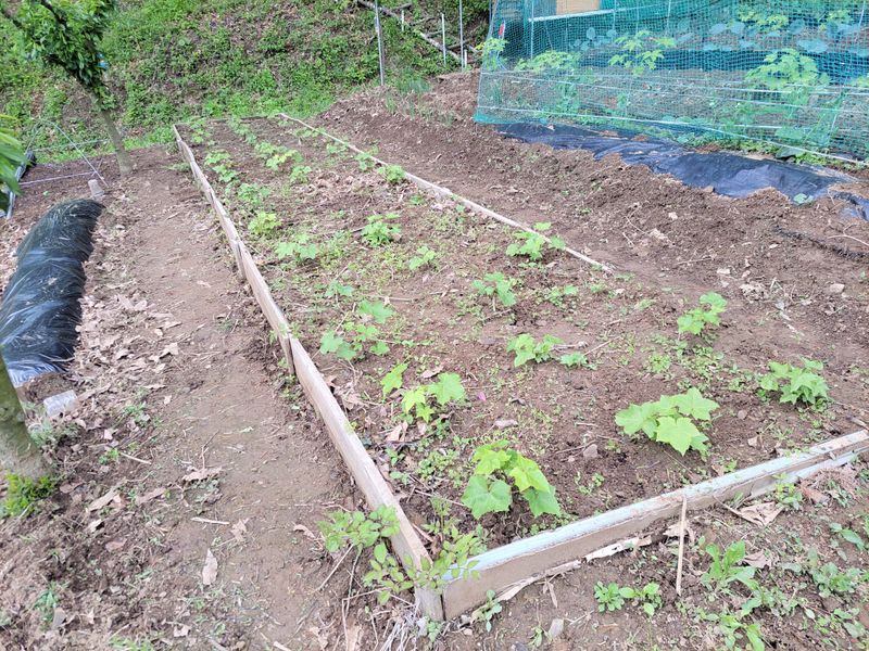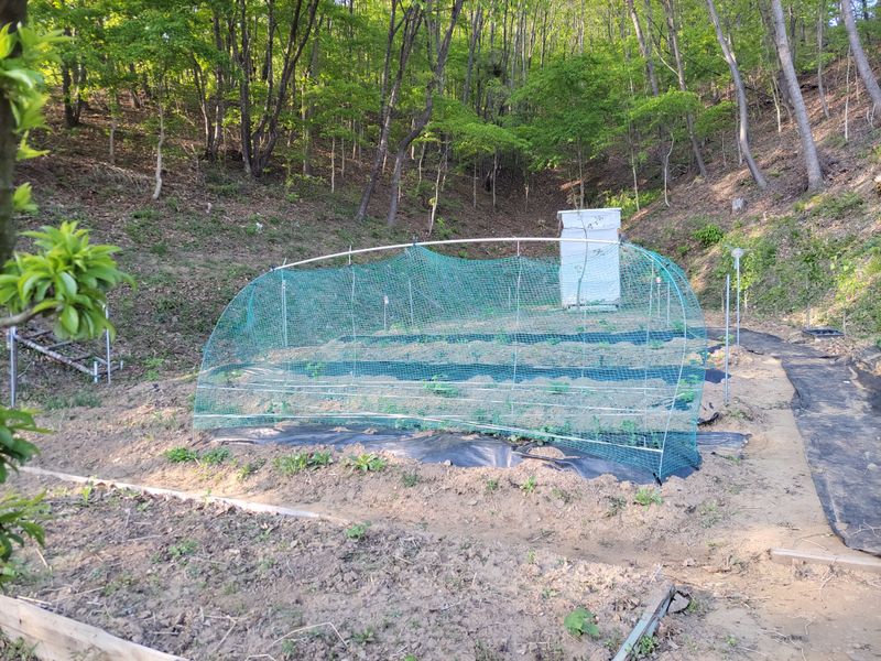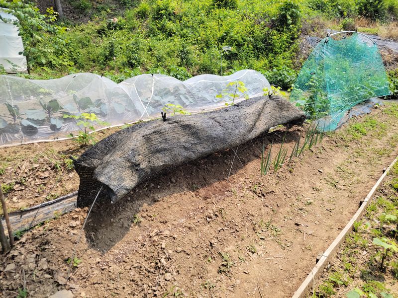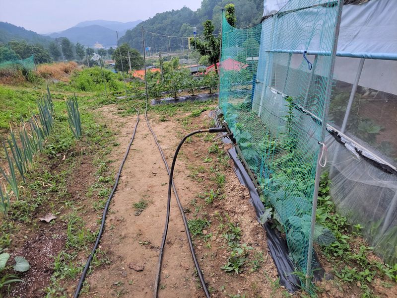어제는 비가 오는둥 마는둥ᆢ 농막에 고추, 토마토 등 작물에 물주는 일이 급했네요. 늦게 뿌린 열무씨가 싹을 틔우길래 우선 그물망을 쳐주는 일로 하루를 보냈네요.