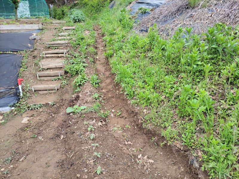 엄나무 종근 심은 틀밭에 풀을 뽑았습니다. 아직 어린 애들이라 조심조심 ᆢ 농막 경사지 배수로 파기는 해마다 하는 일인데도 계속 쌓입니다. 에고ᆢ, 일 찾아하면 한도 끝도 없네요 ^^