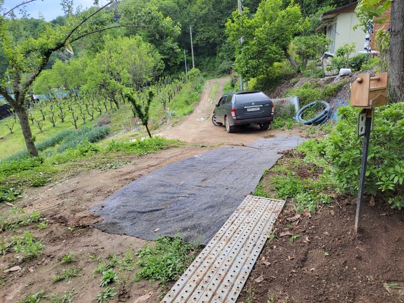 예초기가 고장나니 갑자기 한가해진 기분입니다. 흙 쓸려나가는 농막 주차공간에 부직포 깔고, 종자로 싹틔운 엄나무 순들 포트에 담았습니다. 양은 얼마 안되지만 그것도 일이네요.