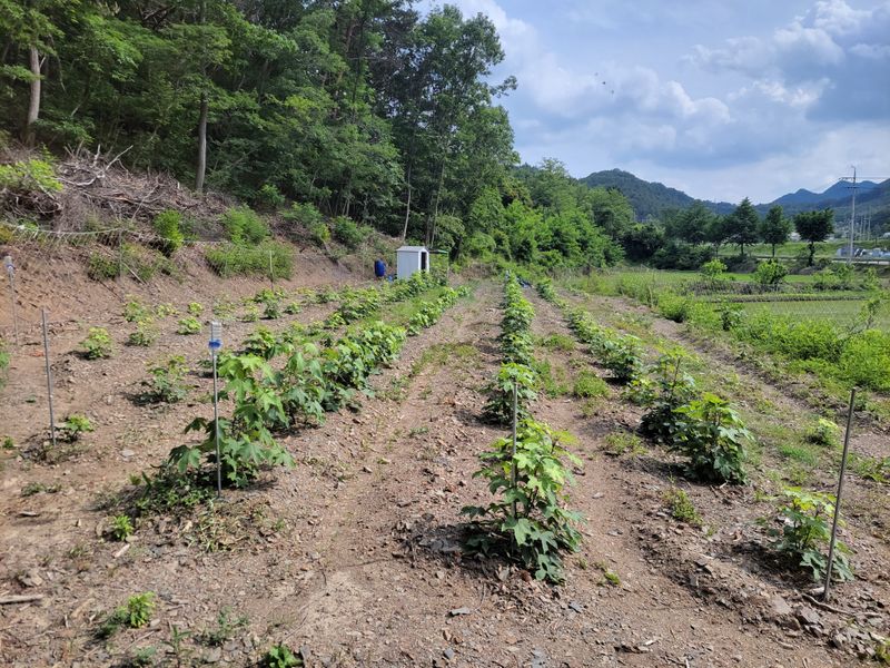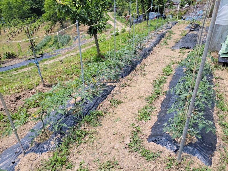 비가 오는 건지? 마는 건지? 아지까지 땅도 다 적시지 않았습니다. 그래도 기다리던 비소식이니, 엄나무 밭 풀관리 겸, 나가봅니다. 이제 2차 성장을 시작해 무럭무럭 자라주기를 바래보면서요. 발갛게 익은 토마토는 덤입니다. ㅎㅎ, 다들 무더운 여름 무사히 견디시기를요...