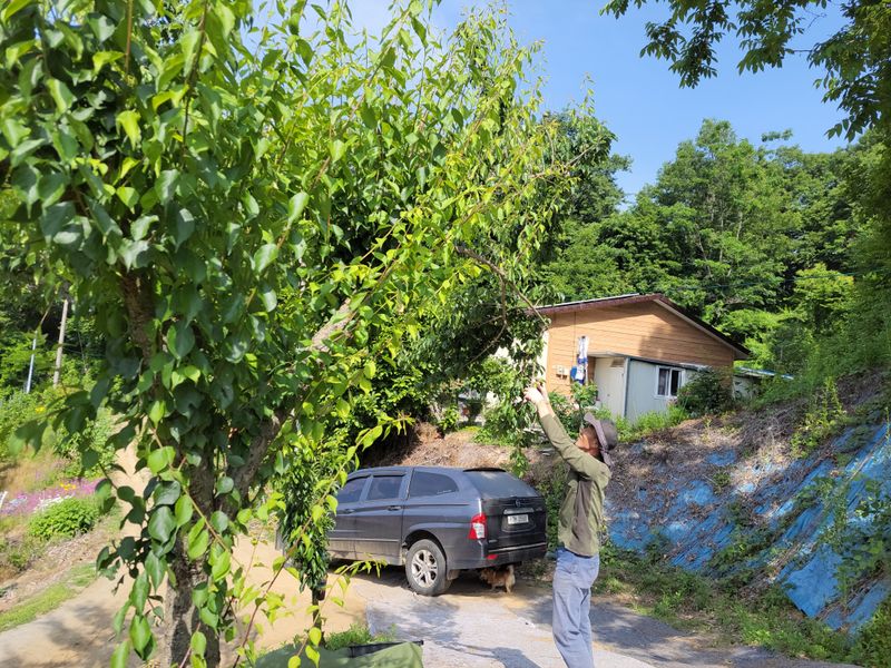 아침엔 매실, 오후엔 논두렁에 개복숭아를 털었습니다. 시기가 맞나? 개복숭아는 씨가 생기기 전에 딴다길래 잘라 봤습니다. 딱이네요 ^^