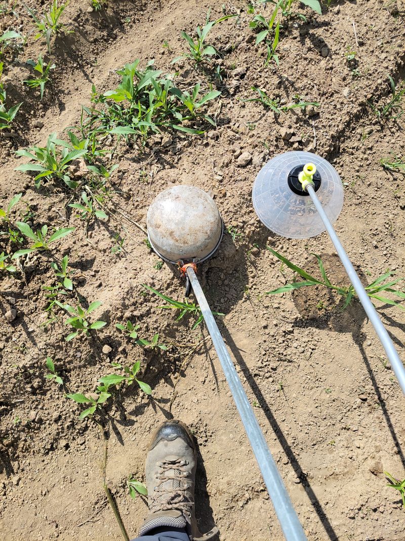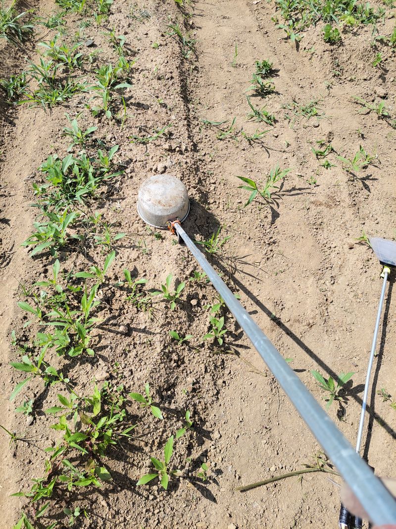 엄나무 밭 약을 치기 위해 바가지를 동원 했습니다. 아래 사진처럼 덮고 뿌리고, 덮고 뿌리고ᆢ 그래도 워낙 작아서ᆢ 미쳐 덮지 못하고 뿌리는 경우가 심심찮게 생기더군요. 역시 쉬운일이 없습니다. 이렇게 화학전 완료 ^^