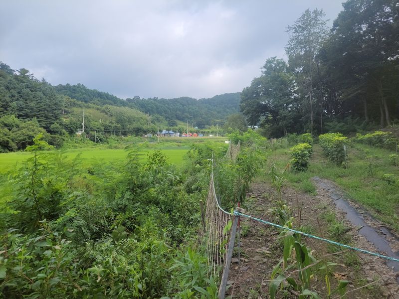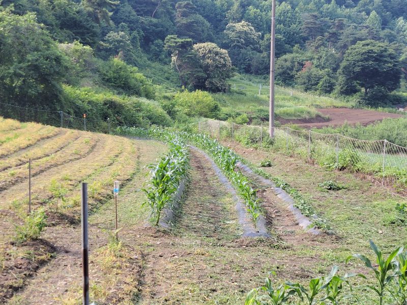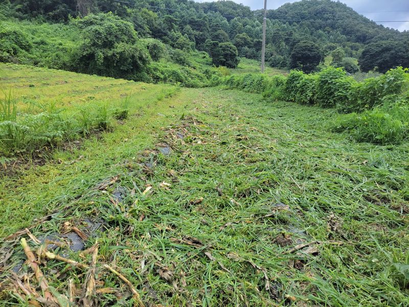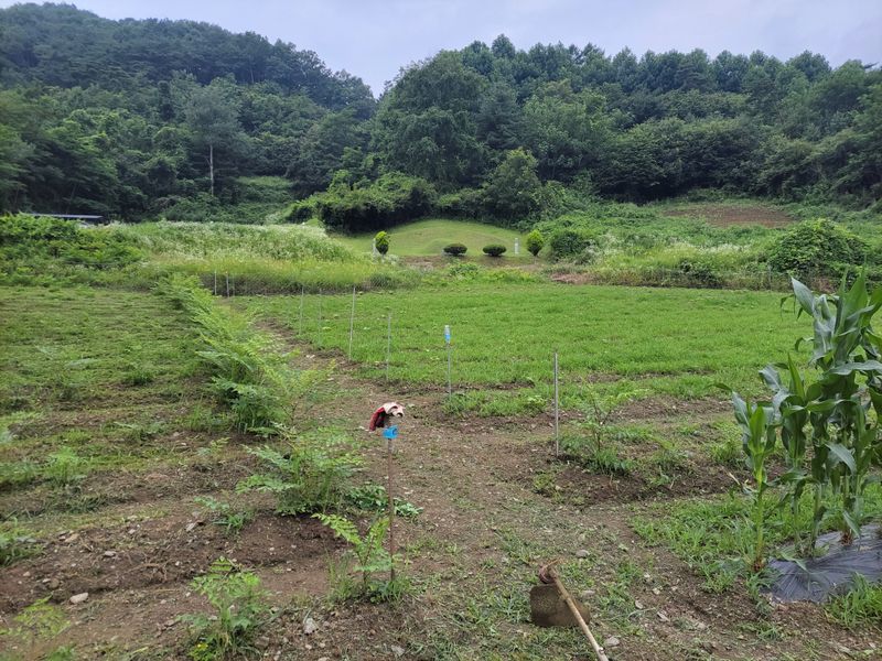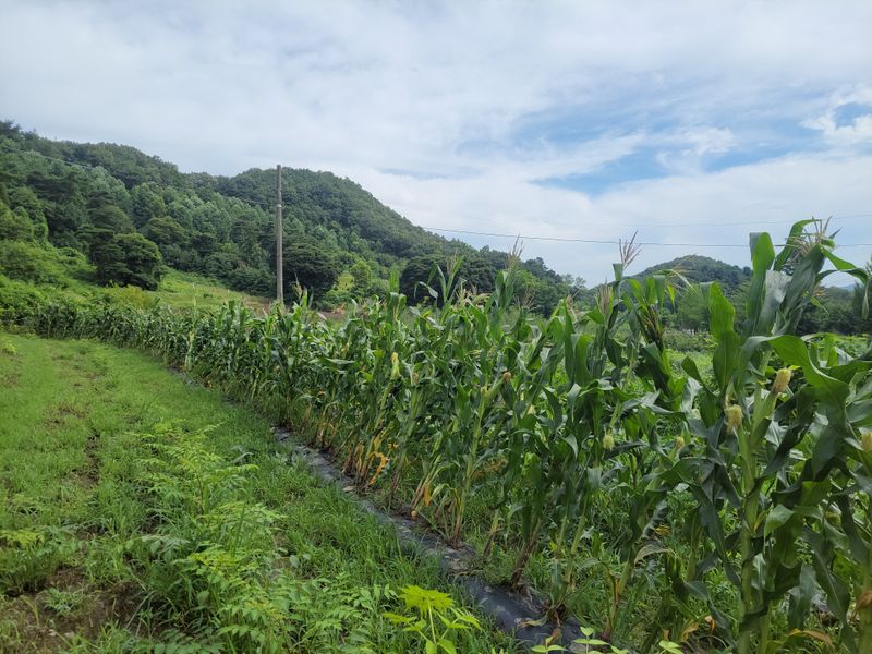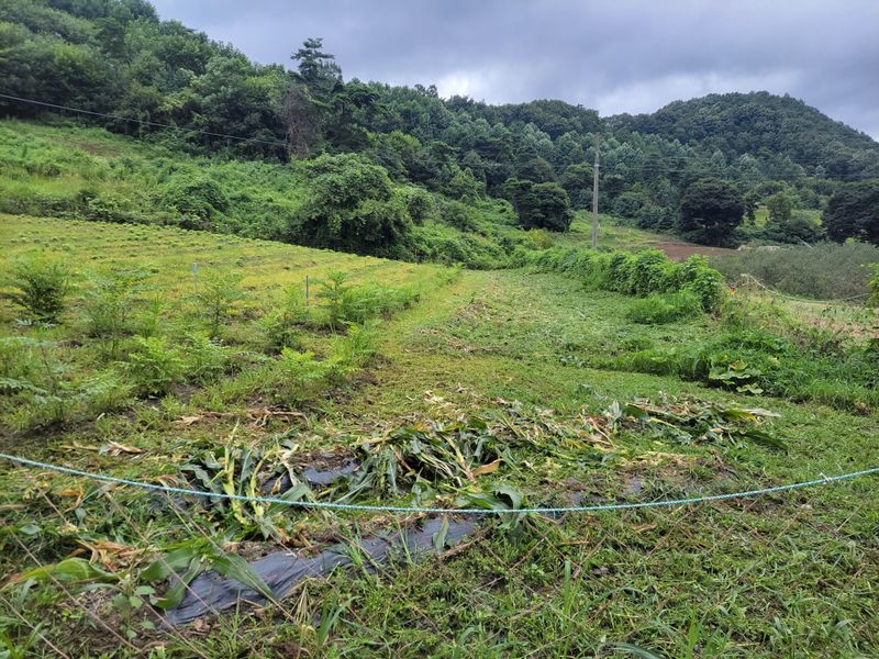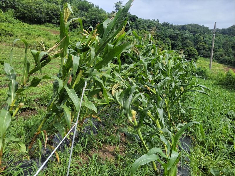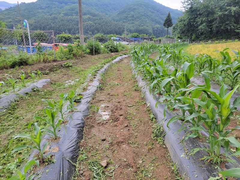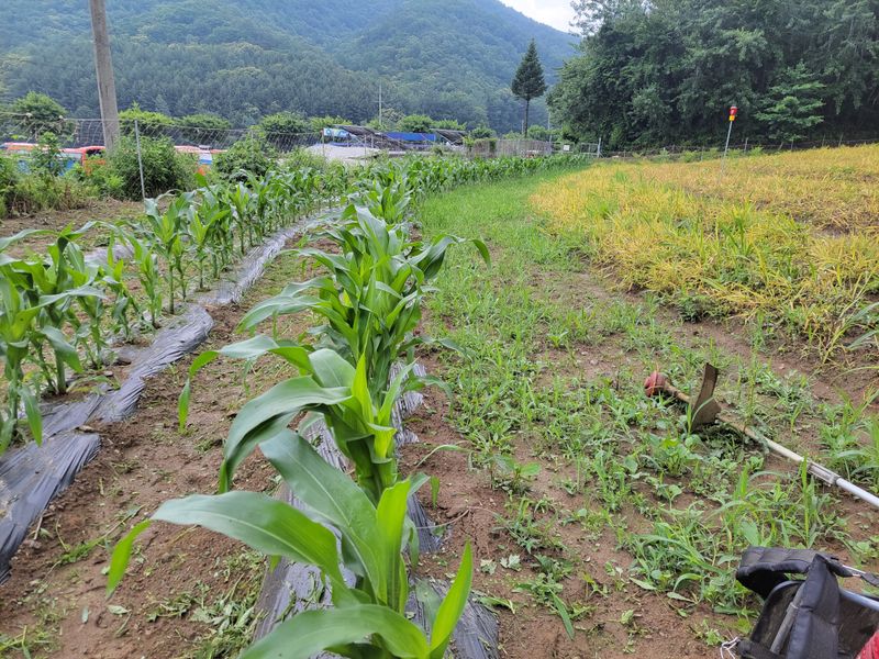 오전 내 비오고ᆢ 엄나무 밭 밑에 심은 옥수수들 기울길래 밟아 줬습니다. 그리고 오후 내 예초기 작업ᆢ 풀과의 영역 다툼은 계속됩니다 ^^
