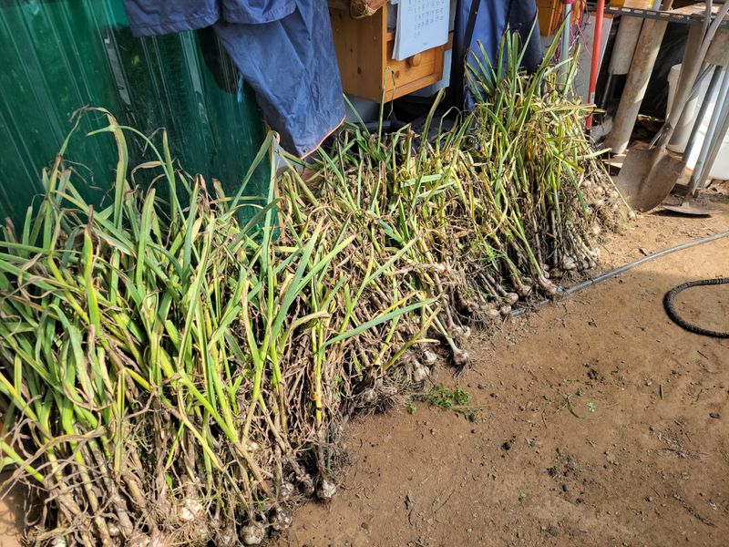 오전에 마늘을 캤습니다. 양은 얼마 안되지만 내손으로 직접 심고 거뒀다는 뿌듯함이 느껴집니다. 오후엔 엄나무 심어놓은 틀밭에 제초작업 ᆢ , 풀과의 씨름은 끝이 없네요.