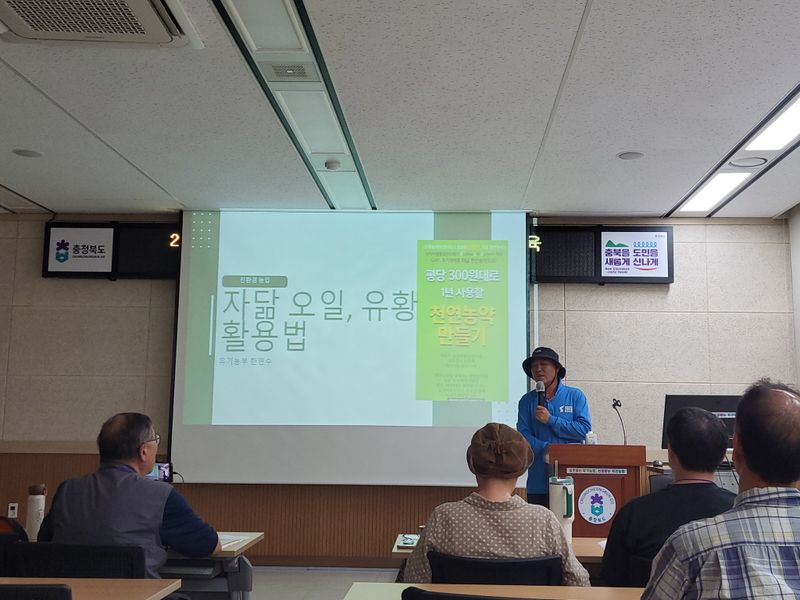 오늘은 유기농연구소 유기농업대학 9강, 자닮오일 및 황토유황 제조 실습과 천연 농자재 성분의 이해에 대한 강의가 있었습니다. 유기농, 알아 갈수록 힘든 것 같아요.