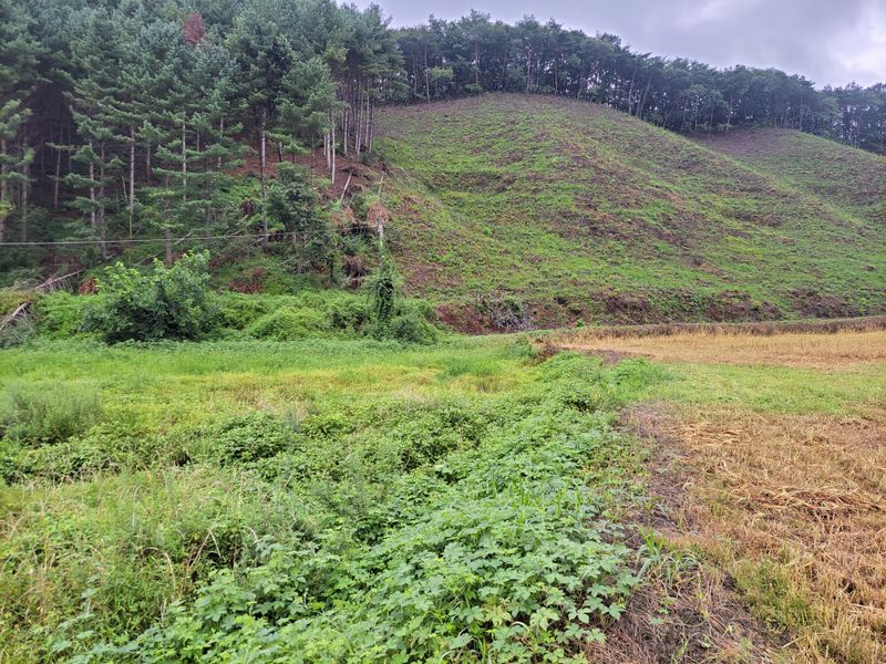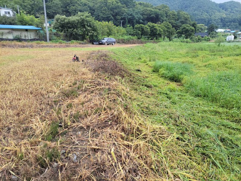 분무골 너른 밭, 흙 받고 나서 포크레인 작업하기로 해서 며칠 시간을 벌었습니다. 해서, 이웃들과의 경계 두둑은 예초작업 중입니다. 풀약을 치면 편키는 한데ᆢ