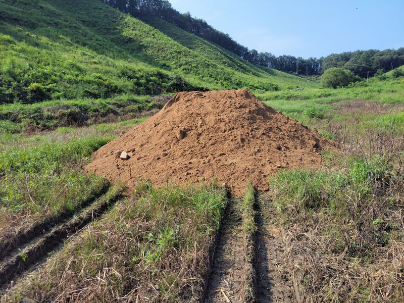 오늘은 새로 조성하는 밭에 흙을 받았습니다. 마사토 입니다. 좀 넉넉히 받고 싶었습니다만. 지출이 너무 커 꼭 필요한 만큼, 25톤으로 10차만 받았네요. 본 흙과 섞는 일은 다음에 따로 합니다.