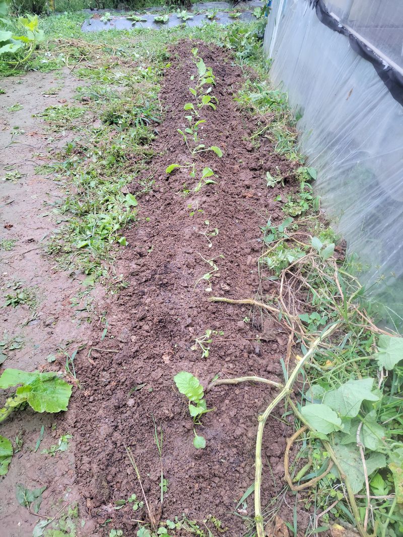 배추, 얼마 안돼니 첨엔 옥수수대 사이사이에 심으려 했습니다. 헌데, 영 내키지 않아 한개 두개 뽑다보니ᆢㅎ 비 그치길 기다려 얼른 심는다고는 했는데, 미쳐 무 심을 공간을 너무 좁게 잡았네요. 아무튼 이제 한랭사만 씌우면 끝입니다.
