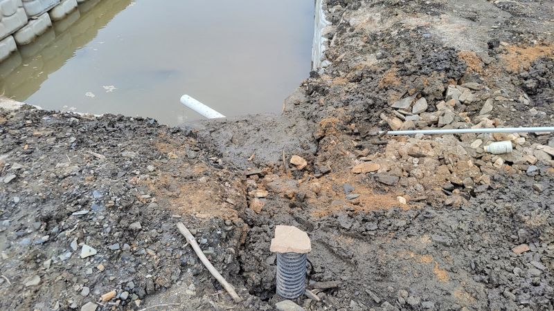 밭 한가운데를 가로지른 유공관을 우물까지만 연결했었는데요. 우물을 채우고 남는 물이 지표면으로 나와 연못으로 유입되니 보기가 좋지않습니다. 보다 못해 수작업으로 땅을파고 연못으로 파이프 하나를 연결해서 해결ᆢ 이번엔 마늘 심을 공간 확보 차원에서 비닐 한골 볐겨...