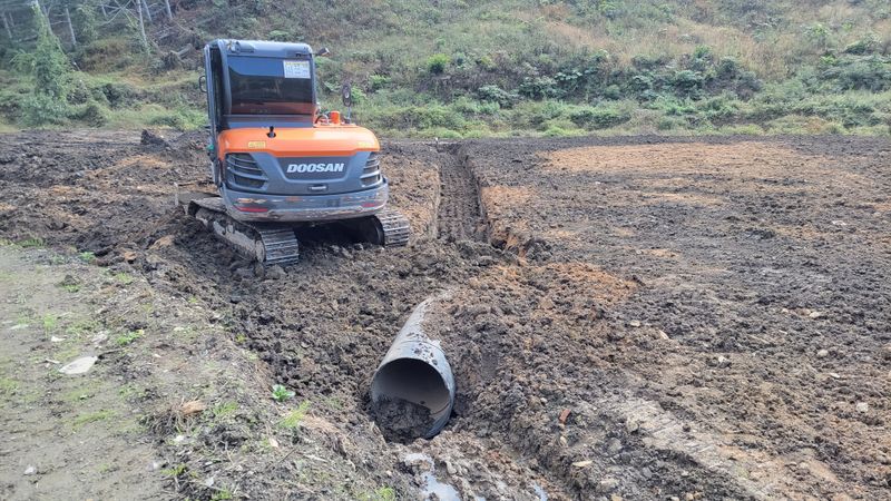 좋은 밭을 만들려면 토목공사비가 땅값만큼 드간다더니ᆢ 9월 내내 이틀걸러 한번씩 내리는 비로, 근 한달만에 재개한 공사ᆢ 이곳 보은은 저녁부터 또 비가옵니다. 내일 작업도 불투명 합니다. 밭고르기(나라시 작업), 2차 유공관 작업, 이제 집수정 설치와 하우스자리 ...