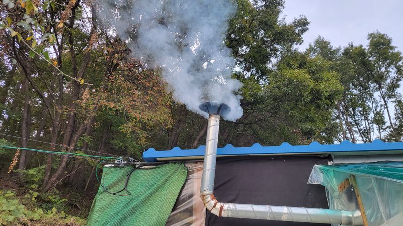 하루는 너른 밭 엄나무 캐고, 하루는 더 너른 밭에 심고ᆢ 반복되는 작업이 지루하기도 합니다만 나무들 생긴 모습이 제각각이라 그럴틈도 없습니다. 아침 저녁으로 날은 쌀쌀해 지지만 농막에는 펠렛 난로 연기가 나무에 걸린듯한 모습 또한 새로운 볼거리 입니다.